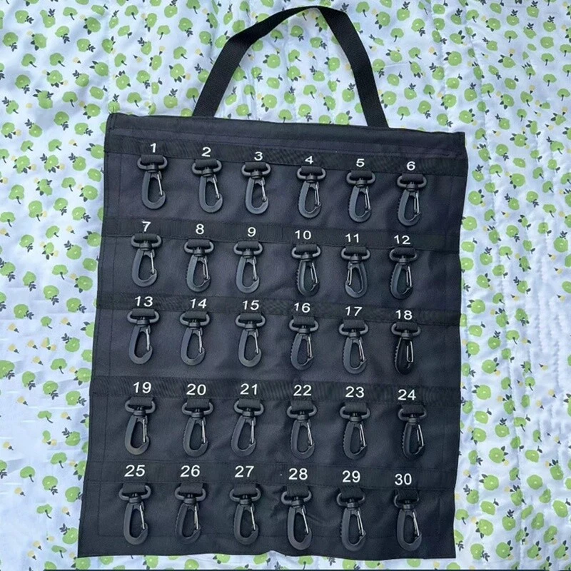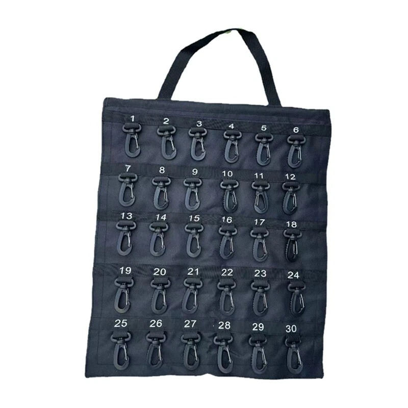 Versatile Roll- Key Storage Box, Portable Storage Box, Holds 40 Keys,5485 Space-Saving Design: Features a roll-up exterior design for easy and compact storage, making this key storage box the perfect solution for secure storage and transportation. Its width is 16 inches and height is 28 inches, allowing for maximum storage of necessary keys. HIGH CAPACITY: This key storage box can hold up to 30 keys, providing considerable storage space and ensuring efficient organization. It's 16 inches wide and 28 inches tall, ensuring there's enough room to safely store all your important keys. MATERIAL: Made of black vinyl, known for its durability, weather resistance and water resistance. This key storage box offers extended life for year-round use, making it an excellent investment for home and office owners. Enhanced Security: Equipped with a plastic hook that reliably protects each key from unexpected situations such as accidental loss or damage. You can rest that your keys are safely stored in this sturdy key storage box. User Convenience: Features carrying handles for easy transport and loops for easy hanging while in use. The portable construction of this key storage box ensures user-friendly operation in all situations. Versatility: Its practical design meets a variety of needs, making it ideal for commercial, real estate, car dealership and property management requirements. Available in the versatile black color, it's sure to match any environment. Colour:Black Material:Oxford cloth Package Contents: 1 x Versatile key storage box