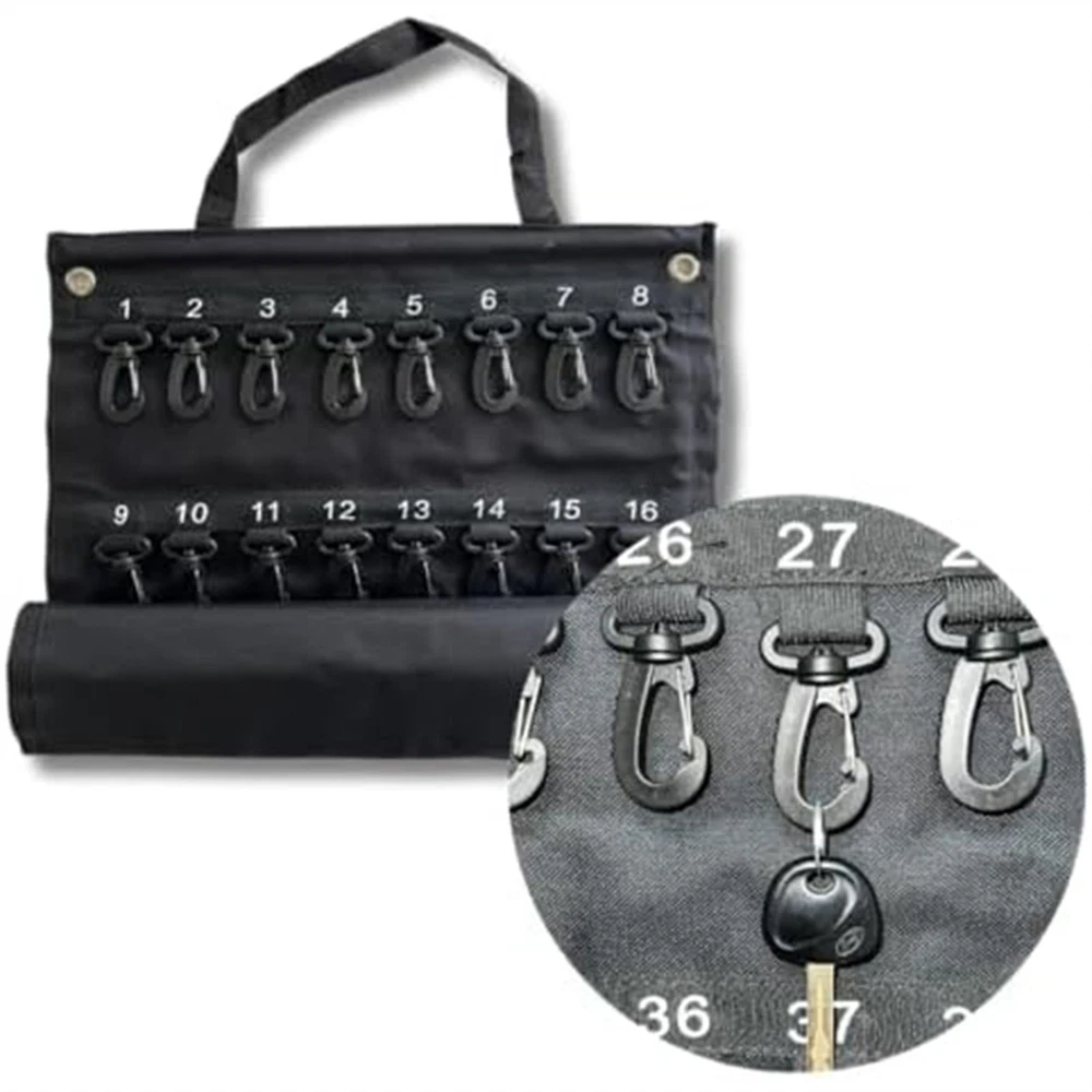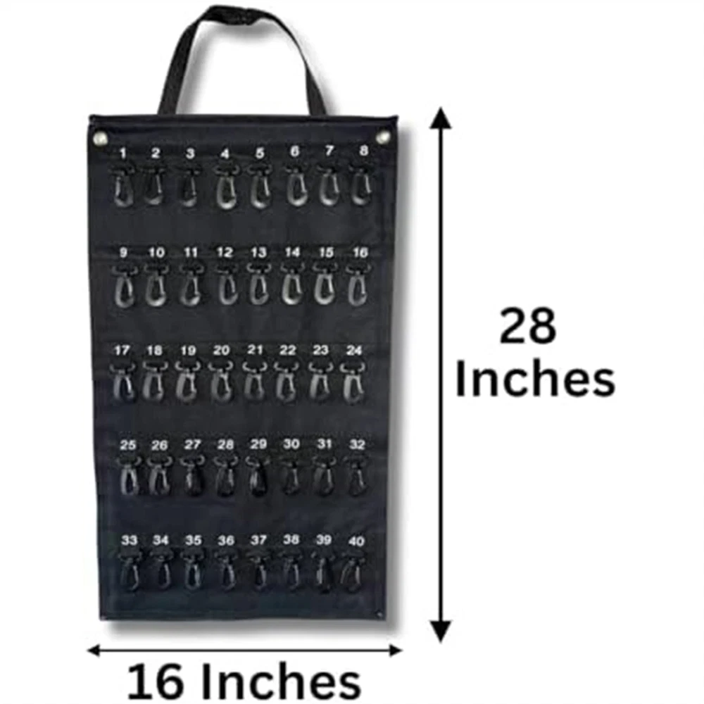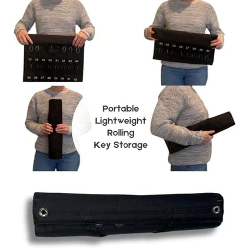 Versatile Roll- Key Storage Box, Weatherproof Portable Storage Box, Holds2210 Space-Saving Design: Features a roll-up exterior design for easy and compact storage, making this key storage box the perfect solution for secure storage and transportation. Its width is 16 inches and height is 28 inches, allowing for maximum storage of necessary keys. HIGH CAPACITY: This key storage box can to 40 keys, providing considerable storage space and ensuring efficient organization. It's 16 inches wide and 28 inches tall, ensuring there's enough room to safely store all your important keys. MATERIAL: Made of black Oxford cloth, known for its durability, weather resistance and water resistance. This key storage box offers extended life for year-round use, making it an excellent investment for home and office owners. Enhanced Security: Equipped with a plastic hook that reliably protects each key from unexpected situations such as accidental loss or damage. You can rest that your keys are safely stored in this sturdy key storage box. User Convenience: Features carrying handles for easy transport and loops for easy hanging while in use. The portable construction of this key storage box ensures user-friendly operation in all situations. Versatility: Its practical design meets a variety of needs, making it Perfect for commercial, real estate, car dealership and property management requirements. Available in the versatile black color, it's sure to match any environment. Colour:Black Material:Oxford cloth Package Contents: 1 * hook bag