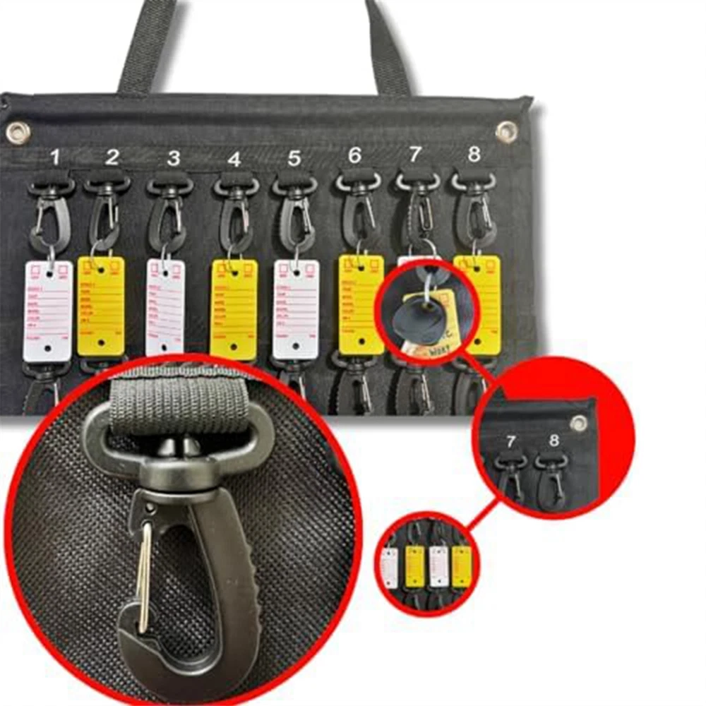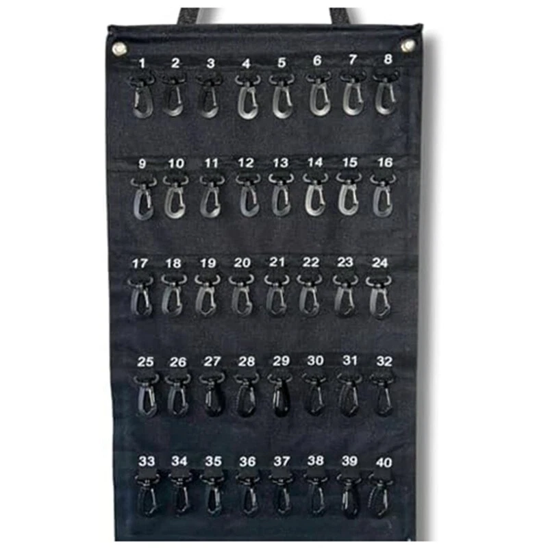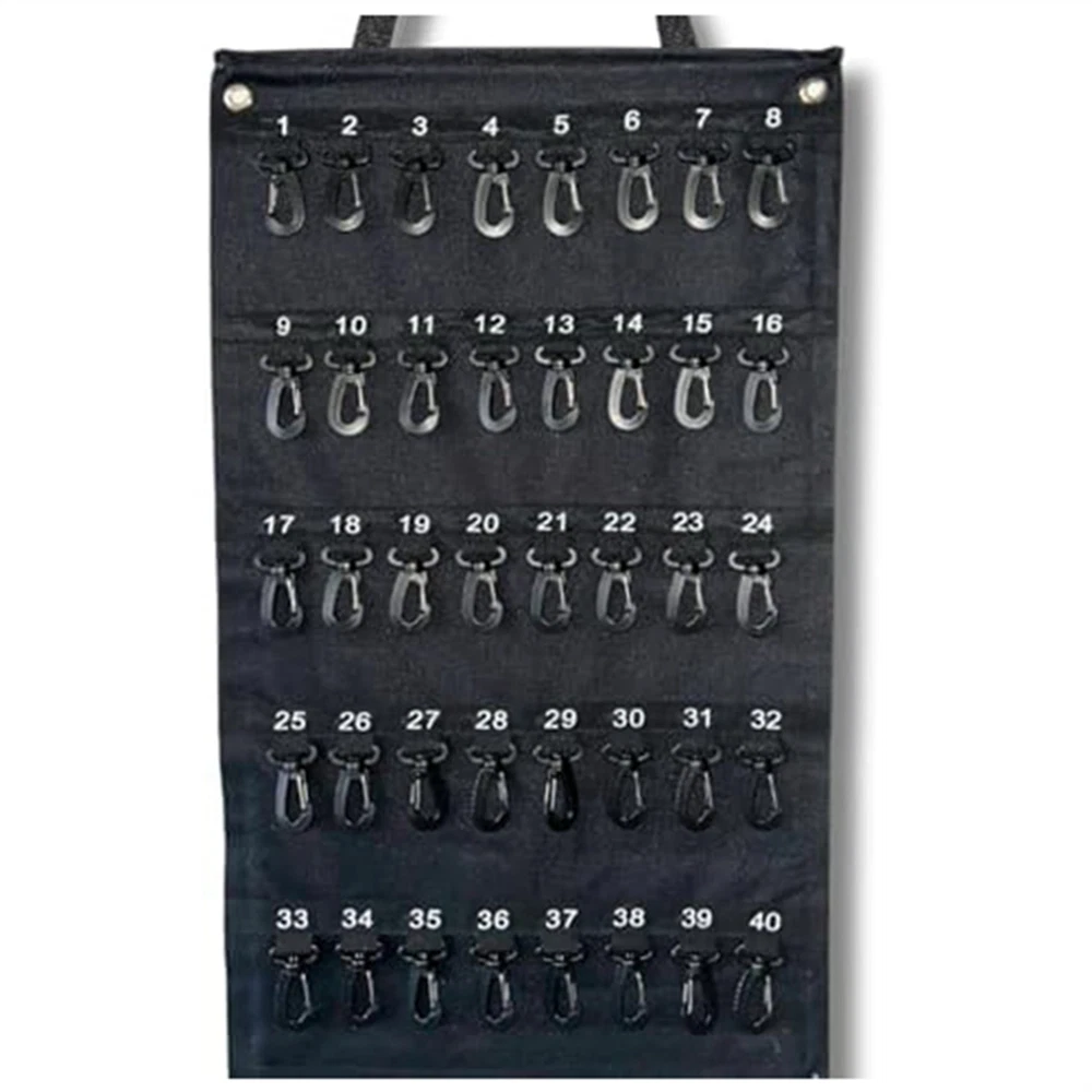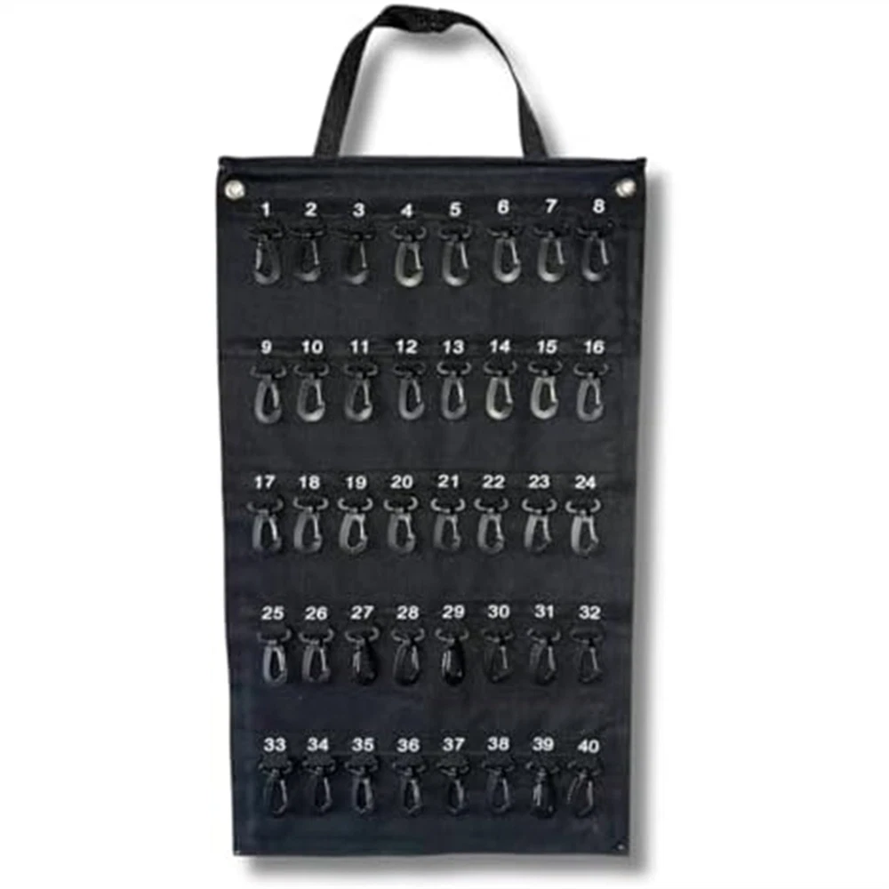 Versatile Roll- Key Storage Box, Weatherproof Portable Storage Box, Holds2210 Space-Saving Design: Features a roll-up exterior design for easy and compact storage, making this key storage box the perfect solution for secure storage and transportation. Its width is 16 inches and height is 28 inches, allowing for maximum storage of necessary keys. HIGH CAPACITY: This key storage box can to 40 keys, providing considerable storage space and ensuring efficient organization. It's 16 inches wide and 28 inches tall, ensuring there's enough room to safely store all your important keys. MATERIAL: Made of black Oxford cloth, known for its durability, weather resistance and water resistance. This key storage box offers extended life for year-round use, making it an excellent investment for home and office owners. Enhanced Security: Equipped with a plastic hook that reliably protects each key from unexpected situations such as accidental loss or damage. You can rest that your keys are safely stored in this sturdy key storage box. User Convenience: Features carrying handles for easy transport and loops for easy hanging while in use. The portable construction of this key storage box ensures user-friendly operation in all situations. Versatility: Its practical design meets a variety of needs, making it Perfect for commercial, real estate, car dealership and property management requirements. Available in the versatile black color, it's sure to match any environment. Colour:Black Material:Oxford cloth Package Contents: 1 * hook bag