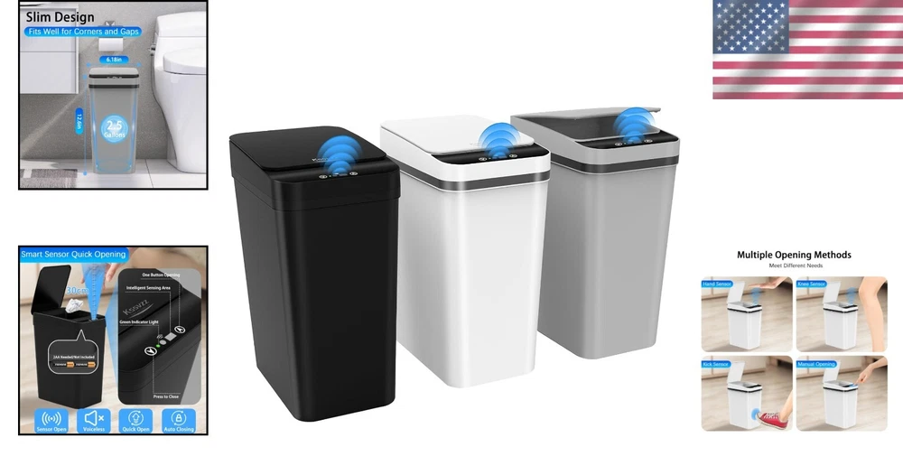 Versatile Slim Trash Can Set - Touchless 2.5 Gallon for Bathroom & Kitchen ‹ › ‹ › ‹ › ‹ › ‹ › ‹ › ‹ › ‹ › ‹ › Versatile Slim Trash Can Set - Touchless 2.5 Gallon for Bathroom & Kitchen Introducing the Ultimate Touchless Trash Can! Embrace modern convenience with our Slim Trash Can Set, engineered with advanced infrared sensing technology. This set of three automatic trash cans combines functionality and style, making them an essential addition to any household. Features: Motion Sensor Technology: Automatically opens in just 0.1 seconds when it senses motion and closes after 5 seconds of inactivity, eliminating the need for touch. 3 Pack Set: Perfectly sized for use in various locations including your bathroom, kitchen, bedroom, and living room. Sturdy & Waterproof: Crafted from premium-grade ABS material with IPX5 waterproof rating, ensuring durability and long-term use even in splash-prone areas. Slim & Odor-Free: Measures 9.2"(L) x 6.2"(W) x 12.6"(H) with a 2.5-gallon capacity; designed to keep odors contained for a fresh indoor environment. Versatile & Practical: Ideal for various settings; features a stackable design for easy transport and storage, complemented by effortless cleaning and maintenance. Why Choose Our Versatile Slim Trash Can Set? Imagine a clean, organized, and odor-free home environment that enhances your lifestyle. Our touchless trash cans redefine convenience, allowing you to maintain hygiene while adding a touch of elegance to your space. No more messy bins or grappling with unpleasant odors; this state-of-the-art waste management solution will transform your approach to cleanliness. Don’t wait — indulge in the luxury of convenience and a fresh atmosphere. Get your Versatile Slim Trash Can Set today and experience the joy of a cleaner, more organized life! Shipping Free & Fast Shipping - We offer free shipping to most of the USA with a normal delivery time of 3-7 days. However, due to the current situation, additional delivery time (up to 3 weeks) may be required for some items. Alternative Carriers - We may use alternative carriers (e.g. USPS, FedEx, UPS, etc.) to ensure your package arrives safely and on time. Due to the use of multiple carriers, we are unable to provide a tracking number automatically. Handling Time - Orders are processed and shipped within 1-2 business days of receiving cleared payment. Shipping Restrictions - Shipping to Alaska, Hawaii, Puerto Rico, Guam, and other US territories may incur shipping charges or delivery restrictions. Please contact us before ordering, or your order can be refunded/cancelled. State Restrictions - There may be restrictions based on your state of purchase. For example, certain items may not be shipped to California due to state regulations. Contact for Tracking Updates - If you require tracking updates or have any concerns about the delivery of your order, please feel free to contact us, and we will be happy to assist you. Return 30-Day Hassle-Free Returns - We want you to be completely satisfied with your purchase. If you are not, you can return the item within 30 days of receiving it for a full refund or exchange. Easy Return Process - To start a return, simply contact us and we will provide you with a prepaid return shipping label and detailed instructions. Restocking Fee - There are no restocking fees for returns. However, the buyer is responsible for return shipping costs if the return is not due to a seller's error. Refund Processing Time - Refunds will be processed within 5 business days of receiving the returned item in its original condition. Payment We accept all major credit cards, PayPal, and Apple Pay for your convenience. Your payment information is secure and encrypted to ensure a safe and seamless transaction. Please complete your payment within 3 days of purchase to avoid any delays in shipping. Feedback Your feedback is extremely important to us. We strive to provide the best products and customer service possible. If you are satisfied with your purchase, please take a moment to leave us a positive review. If you have any concerns or issues with your order, please contact us before leaving negative feedback. We are committed to resolving any problems and ensuring your satisfaction. Contact Us If you have any questions or concerns, please feel free to reach out to our customer support team. You can contact us through the eBay messaging system. We are available Monday to Friday, 9:00 am to 5:00 pm EST, and we will do our best to respond to your inquiry within 24 hours. Thank you for supporting our small family business! UPC: Not Set Unit Quantity: 2.5 gal Room: Bathroom,Bedroom,Kitchen,Living Room,Office Material: Plastic,ABS Features: Automatic,Slim,Stackable,Motion Sensor,Waterproof,Odor Free Suitable For: Indoor Brand: Unbranded Item Height: Automatic Bathroom Trash Can Item Length: Automatic Bathroom Trash Can Item Width: Automatic Bathroom Trash Can Type: Wastebasket Color: Black Capacity: 10 liters Size: Small Number of Compartments: 1 Model: Not Set Item Weight: 2.2 lb MPN: Not Set Shape: Rectangle Style: Modern Pattern: Not Set Country/Region of Manufacture: Not Set Finish: Polished Unit Type: gal Personalize: Not Set