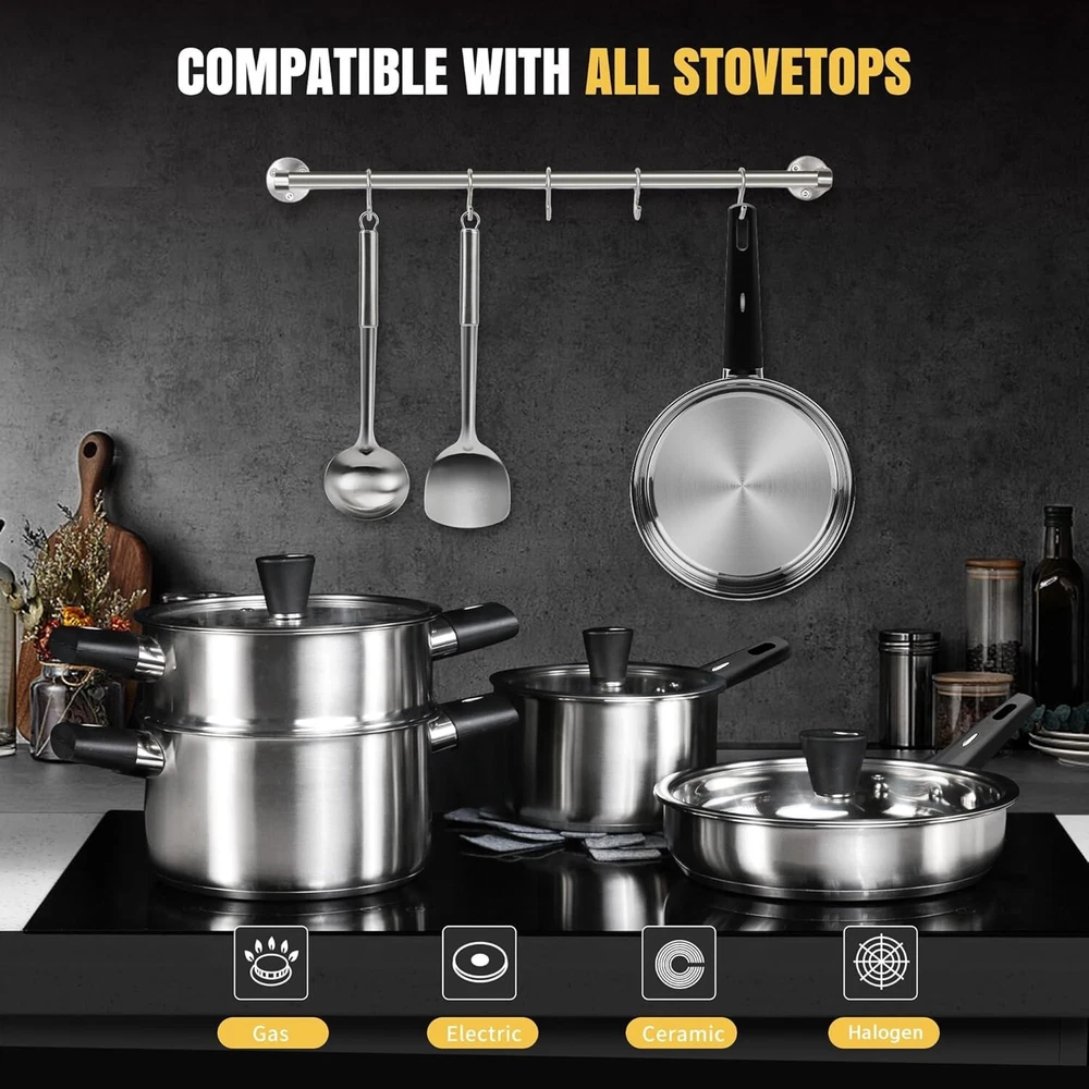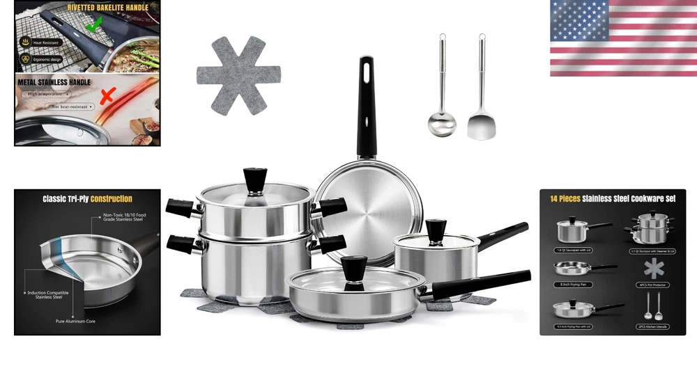 Versatile Stainless Steel Cookware Set with Utensils & Pot Protectors - 14PCS ‹ › ‹ › ‹ › ‹ › ‹ › ‹ › ‹ › ‹ › Versatile Stainless Steel Cookware Set with Utensils & Pot Protectors - 14PCS Transform your culinary experience with this exquisite 14-piece cookware set, meticulously crafted for both functionality and style. What’s Included: 2.2qt saucepan with lid 3.8qt stockpot with steamer & lid 8-inch frying pan 9.5-inch fry pan with lid 4 pot protectors 2 kitchen utensils Exceptional Features: Easy Installation: Lids designed for simple installation – no screwdriver required! Detailed operation is available via a video link. Comfortable Cooking: Stay-cool handles ensure safety and comfort, while see-through tempered glass lids with steam vents allow you to monitor your culinary creations effortlessly. Durable & Sturdy: Professional three-ply construction featuring a core of pure aluminum for impeccable heat distribution and a stunning brushed stainless steel finish. Non-Toxic Assurance: Crafted from premium food-grade stainless steel, this cookware is free from harmful chemicals such as Teflon, PFOA, PFOS, PTFE, lead, and cadmium, ensuring safety with every meal. Easy Maintenance: Suitable for hand washing or dishwasher use; simply pat dry and store in a cool, dry place to maintain its exquisite quality. Versatile Compatibility: Ideal for use on all cooktops, including induction, gas, electric, and halogen. Why Choose Our Cookware Set? This remarkable cookware set is designed for those who appreciate the art of cooking, offering exceptional quality, safety, and versatility. Whether you're a novice or a seasoned chef, our cookware set elevates your kitchen experience. Cook like a pro and embrace the joy of culinary creativity! Order your Versatile Stainless Steel Cookware Set today and bring elegance and efficiency to your kitchen! Shipping Free & Fast Shipping - We offer free shipping to most of the USA with a normal delivery time of 3-7 days. However, due to the current situation, additional delivery time (up to 3 weeks) may be required for some items. Alternative Carriers - We may use alternative carriers (e.g. USPS, FedEx, UPS, etc.) to ensure your package arrives safely and on time. Due to the use of multiple carriers, we are unable to provide a tracking number automatically. Handling Time - Orders are processed and shipped within 1-2 business days of receiving cleared payment. Shipping Restrictions - Shipping to Alaska, Hawaii, Puerto Rico, Guam, and other US territories may incur shipping charges or delivery restrictions. Please contact us before ordering, or your order can be refunded/cancelled. State Restrictions - There may be restrictions based on your state of purchase. For example, certain items may not be shipped to California due to state regulations. Contact for Tracking Updates - If you require tracking updates or have any concerns about the delivery of your order, please feel free to contact us, and we will be happy to assist you. Return 30-Day Hassle-Free Returns - We want you to be completely satisfied with your purchase. If you are not, you can return the item within 30 days of receiving it for a full refund or exchange. Easy Return Process - To start a return, simply contact us and we will provide you with a prepaid return shipping label and detailed instructions. Restocking Fee - There are no restocking fees for returns. However, the buyer is responsible for return shipping costs if the return is not due to a seller's error. Refund Processing Time - Refunds will be processed within 5 business days of receiving the returned item in its original condition. Payment We accept all major credit cards, PayPal, and Apple Pay for your convenience. Your payment information is secure and encrypted to ensure a safe and seamless transaction. Please complete your payment within 3 days of purchase to avoid any delays in shipping. Feedback Your feedback is extremely important to us. We strive to provide the best products and customer service possible. If you are satisfied with your purchase, please take a moment to leave us a positive review. If you have any concerns or issues with your order, please contact us before leaving negative feedback. We are committed to resolving any problems and ensuring your satisfaction. Contact Us If you have any questions or concerns, please feel free to reach out to our customer support team. You can contact us through the eBay messaging system. We are available Monday to Friday, 9:00 am to 5:00 pm EST, and we will do our best to respond to your inquiry within 24 hours. Buy it now and enjoy a pleasant shopping experience! UPC: Not Set Unit Quantity: 14 Stove Type Compatibility: Electric,Gas,Induction,Halogen Material: Stainless Steel Features: Dishwasher Safe,With Lid,Non-Toxic,Stay-Cool Handles,Tempered Glass Lid,Steam Vents Set Includes: Frying Pan,Saucepan,Steamer,Stockpot,Pot Protectors,Kitchen Utensils,2.2qt Saucepan with Lid,8inch Frying Pan,9.5inch Fry Pan with Lid,4 Pot Protectors,2 Kitchen Utensils Type of Oven: Not Set Brand: Unbranded Surface Coating: None Color: Silver Type: Cookware Set Item Length: Not Set Item Width: Not Set Item Diameter: Not Set MPN: Not Set Country/Region of Manufacture: Not Set Number of Items in Set: Fourteen-Piece Shape: Not Set Item Height: Not Set Manufacturer Warranty: Not Set Item Depth: Not Set Heat Resistance: Not Set Model: Not Set Item Weight: Not Set Unit Type: Not Set