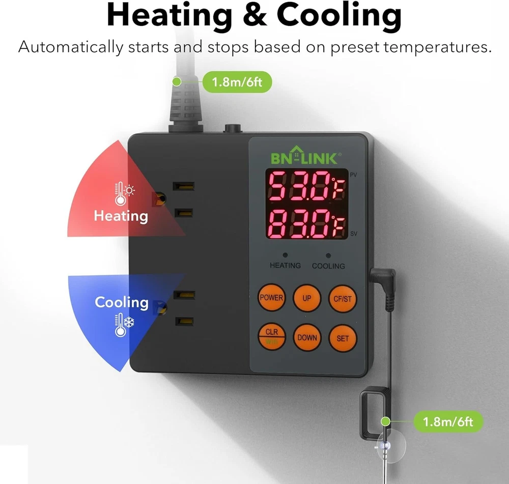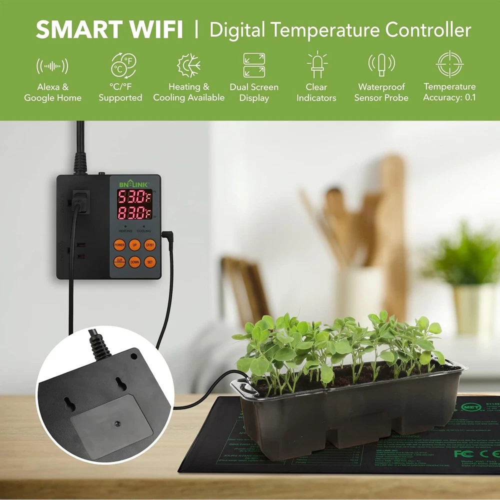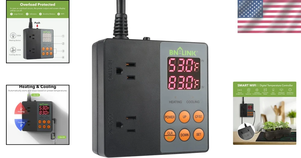 Versatile WiFi Temperature Controller for Aquariums, Seed Germination & Brewing ‹ › ‹ › ‹ › ‹ › ‹ › ‹ › ‹ › ‹ › ‹ › ‹ › ‹ › Versatile WiFi Temperature Controller Perfect for Aquariums, Seed Germination & Brewing Features: APP Remote Control: Seamlessly manage your temperature via the free " Smart" app, compatible with both iOS and Android devices. Designed to work with 2.4GHz WiFi networks for easy remote control. Voice Control: Command your heating and cooling devices effortlessly with simple voice commands through Alexa or Google Home. Versatile Applications: Ideal for a multitude of uses including seedling germination, rooting, brewing, heating, fermentation, and maintaining ideal conditions in aquariums. Dual Functions: Equipped with professional dual digital outlets and three-prong grounded plugs, allowing simultaneous control of heating and cooling devices. Safe & Reliable: Advanced overload protection and a waterproof sensor probe ensure optimal and safe operation. Rated for operational excellence at 125VAC 60Hz with 15A/1875W resistive and general-purpose capability, 1/2 HP, TV-5 rated. Benefits: Maintain the ideal temperature for various environments with precision and ease. Enjoy the freedom of remote management, ensuring the perfect climate for your projects. Voice command functionality offers unparalleled convenience, enhancing your smart home experience. Safeguard your investments in aquariums, seeds, and brews with reliable temperature regulation. Why choose our Versatile WiFi Temperature Controller? Are you passionate about gardening, brewing, or maintaining aquatic life and looking for a solution to keep your environments at a perfect temperature? Our Versatile WiFi Temperature Controller is expertly designed for your needs, equipped to manage multiple devices while offering the convenience of remote and voice control. Bring peace of mind to your temperature-sensitive endeavors and ensure success with our high-quality temperature controller. Elevate your experience by choosing our product today! Shipping Free & Fast Shipping - We offer free shipping to most of the USA with a normal delivery time of 3-7 days. However, due to the current situation, additional delivery time (up to 3 weeks) may be required for some items. Alternative Carriers - We may use alternative carriers (e.g. USPS, FedEx, UPS, etc.) to ensure your package arrives safely and on time. Due to the use of multiple carriers, we are unable to provide a tracking number automatically. Handling Time - Orders are processed and shipped within 1-2 business days of receiving cleared payment. Shipping Restrictions - Shipping to Alaska, Hawaii, Puerto Rico, Guam, and other US territories may incur shipping charges or delivery restrictions. Please contact us before ordering, or your order can be refunded/cancelled. State Restrictions - There may be restrictions based on your state of purchase. For example, certain items may not be shipped to California due to state regulations. Contact for Tracking Updates - If you require tracking updates or have any concerns about the delivery of your order, please feel free to contact us, and we will be happy to assist you. Return 30-Day Hassle-Free Returns - We want you to be completely satisfied with your purchase. If you are not, you can return the item within 30 days of receiving it for a full refund or exchange. Easy Return Process - To start a return, simply contact us and we will provide you with a prepaid return shipping label and detailed instructions. Restocking Fee - There are no restocking fees for returns. However, the buyer is responsible for return shipping costs if the return is not due to a seller's error. Refund Processing Time - Refunds will be processed within 5 business days of receiving the returned item in its original condition. Payment We accept all major credit cards, PayPal, and Apple Pay for your convenience. Your payment information is secure and encrypted to ensure a safe and seamless transaction. Please complete your payment within 3 days of purchase to avoid any delays in shipping. Feedback Your feedback is extremely important to us. We strive to provide the best products and customer service possible. If you are satisfied with your purchase, please take a moment to leave us a positive review. If you have any concerns or issues with your order, please contact us before leaving negative feedback. We are committed to resolving any problems and ensuring your satisfaction. Contact Us If you have any questions or concerns, please feel free to reach out to our customer support team. You can contact us through the eBay messaging system. We are available Monday to Friday, 9:00 am to 5:00 pm EST, and we will do our best to respond to your inquiry within 24 hours. Thank you for supporting our small family business! UPC: Not Set Unit Quantity: 1.5 lb Smart Home Compatibility: Amazon Alexa,Google Home/Assistant,Universal Control Style: App Control,Digital,Remote Control,Touch Power Source: Corded Electric Compatible Product: Universal Material: Plastic,T9 Smart Home Protocol: Clear Connect,EnOcean,Ethernet,HomePlug,Infrared,KNX,Near Field Communication (NFC),Proprietary,Sub-GHz,Thread,Wi-Fi Mounting: Surface-Mounted,Wall-Mounted Compatible Model: Universal Features: App Control,Digital Display,Remote Control,Wi-Fi Items Included: Batteries,Display Base,Dry Wall Plugs,Mounting Hardware,None,Power Extender Kit,Remote Control,Remote Sensor,Screwdriver,Trim Plate Protection Properties: Overload Protection,Waterproof Resistance Properties: Abrasion Resistant,Dust Resistant,Scratch Resistant,Waterproof,Water Resistant Brand: Unbranded Programmability: Non-Programmable Model: Not Set Cool Stages: 2 Color: Black Sensor Technology: Temperature Thermostat Shape: Rectangular Thermostat Programmable Days: None Voltage Type: Line Voltage Battery Size: None Voltage: 125 V System Switching: Auto MPN: Not Set Display Size: 4 in (10.16 c