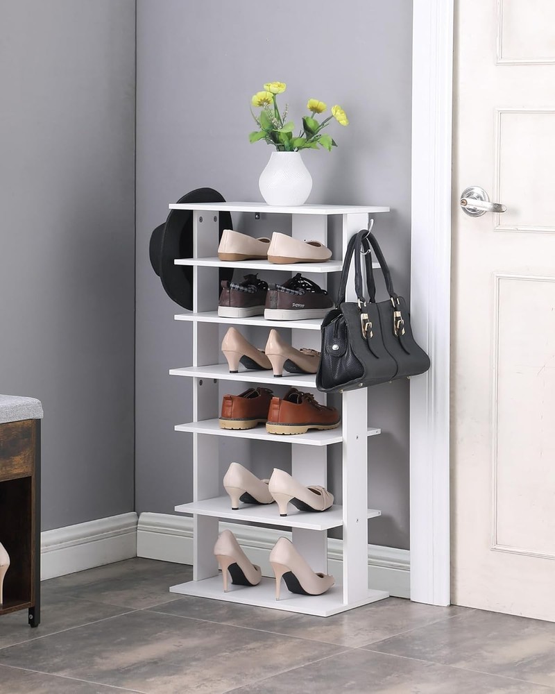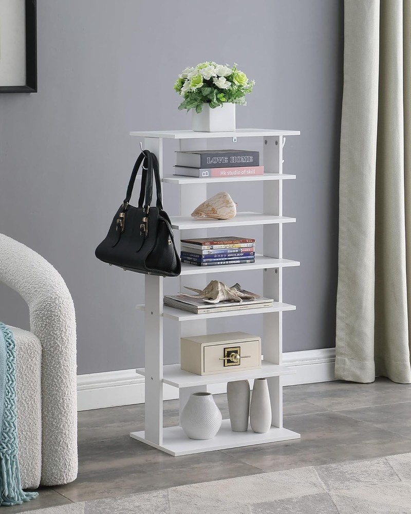 【Neat storage】: This 7 Tier shoe rack fits perfectly into shoes at the door. Up to 12 pairs of shoes can be placed. Different shelf heights can meet the needs of sneakers, boots and heels, keeping the entryway neat and beautiful 【Space saving】: The size of this shoe rack is 17.7 "W × 11.8 "D × 39 "H can be used in narrow spaces, which is very space saving. Different layer heights can meet different needs. The open shoe rack makes the shoes clear at a glance. 【Versatility】: can be used as shoe rack, bookcase, display stand. Can be prevented in the living room, hallway, bedroom. Hooks on both sides can hang umbrellas, keys and other items. 【Beautiful and Sturdy】: This shoe rack uses safe P2 particle board, which is white and easy to mat... Happylistings Vertical Shoe Rack, 7 Tier Shoe Storage Organizer With Hooks, Entryway Shoe Tower,Vertical Shoe Organizer,Vertical Shoe Organizer,White 【Neat storage】: This 7 Tier shoe rack fits perfectly into shoes at the door. Up to 12 pairs of shoes can be placed. Different shelf heights can meet the needs of sneakers, boots and heels, keeping the entryway neat and beautiful 【Space saving】: The size of this shoe rack is 17.7 "W × 11.8 "D × 39 "H can be used in narrow spaces, which is very space saving. Different layer heights can meet different needs. The open shoe rack makes the shoes clear at a glance. 【Versatility】: can be used as shoe rack, bookcase, display stand. Can be prevented in the living room, hallway, bedroom. Hooks on both sides can hang umbrellas, keys and other items. 【Beautiful and Sturdy】: This shoe rack uses safe P2 particle board, which is white and easy to match with other furniture. Each layer of board can bear 22 pounds. 【Easy to Assemble】: Detailed assembly instruction, accessories and parts are included already, leaving you the rest of the time to line your shoes up nicely on this shoe shelf. If there is any problem in assembly, please feel free to contact us. We are always here. Item Specifics Brand Unbranded Type Free Standing Shoe Racks Room Type Bedroom, Living Room, Hallway Number of Shelves 7 Special Feature Adjustable Product Dimensions 11.4"D x 17.7"W x 38.6"H Finish Type Laminated Product Care Instructions Wipe with Dry Cloth Size Vertical Weight Limit 25 Pounds Assembly Required Yes Recommended Uses For Product Living Room, Bedroom, Hallway Number of Items 1 Included Components Shoe Rack Model KH0006W Item Weight 25 Pounds Furniture Finish Brown Installation Type Freestanding Weight capacity Maximum weight: 25 Pounds Specific Uses For Product Shoes, Bedroom, Hallway, Living Room Product Name Vertical Shoe Rack Item Weight 25 pounds Item model number KH0006W #1,616,546 in Home & Kitchen (See Top 100 in Home & Kitchen) #1,616,54 Contact Us 1.Dear customers, we appreciate your business, our aim is to provide Top Level Customer Service,if you are satisfied with our service, please leave us a 5 star positive feedback . 2.If you have any question or concern about your eBay order, please feel free to let us know. We will try our best to reply all questions within 24 hours. However, no answer will be replied during weekends or holidays. Please allow up to 48 hours delay in receiving our response after long weekends or holidays. 3.Please via eBay Message for a solution for resolutions before leaving negative feedback, we strive to providing the greatest service and bringing the highest satisfaction to all of our customers. Shipping 1.We usually ship within 3-5 business days of receiving cleared payment., and we provide Free Shipping for most items. 2.Fast shipping is very important for us. We use multiple fulfilment warehouse around the United States. We only ship to the lower 48 States and do not ship to PO Boxes. 3.Please make sure the correct Ship-To address is entered before checking out. Once the payment is completed, you may not be able to change the shipping address. We shall not be held responsible for any wrong or undeliverable addresses. Returns 1.We provide 14 days return upon the buyer received the item. It must be in good condition and you will undertake the returned shipping cost. 2.We will offer replacement or refund for all DEFECTIVE items (not including damage resulting from accidents / abuse / misuse / improper care), but a photo is needed for our reference beforehand and should be reported to us within 7 days from purchase date. 3.All items are brand new and have been passed the quality check. All are packed in a good condition before item dispatch. Payment We accept PayPal payment,PayPal Credit,Credit card or debit card and so on. Payment should be completed within 4 (Four) days of auction closing. Or unpaid dispute will be filed for closing auction. We will leave a positive feedback immediately after payment is received. We appreciate a positive feedback as much as you do. If for some reason there is any issue with the purchase, please contact us prior to leaving feedback, we will be glad to work together and provide a satisfying solution. Happylistings DESCRIPTION PAYMENT SHIPPING RETURN POLICY CONTACT US Help & Info Payment Policy Shipping Policy Return Policy FAQ About Us Vertical Shoe Rack, 7 Tier Shoe Storage Organizer With Hooks, Entryway Shoe Tower,Vertical Shoe Organizer,Vertical Shoe Organizer,White 【Neat storage】: This 7 Tier shoe rack fits perfectly into shoes at the door. Up to 12 pairs of shoes can be placed. Different shelf heights can meet the needs of sneakers, boots and heels, keeping the entryway neat and beautiful 【Space saving】: The size of this shoe rack is 17.7 "W × 11.8 "D × 39 "H can be used in narrow spaces, which is very space saving. Different layer heights can meet different needs. The open shoe rack makes the shoes clear at a glance. 【Versatility】: can be used as shoe rack, bookcase, display stand. Can be prevented in the living room, hallway, bedroom. Hooks on both sides can hang umbrellas, keys and other items. 【Beautiful