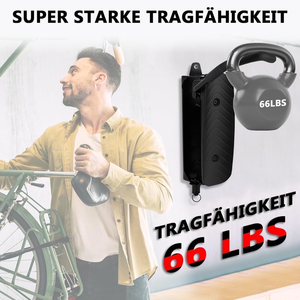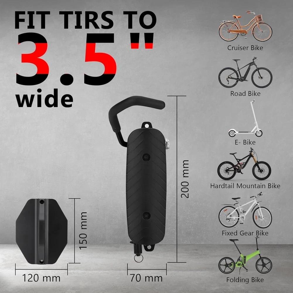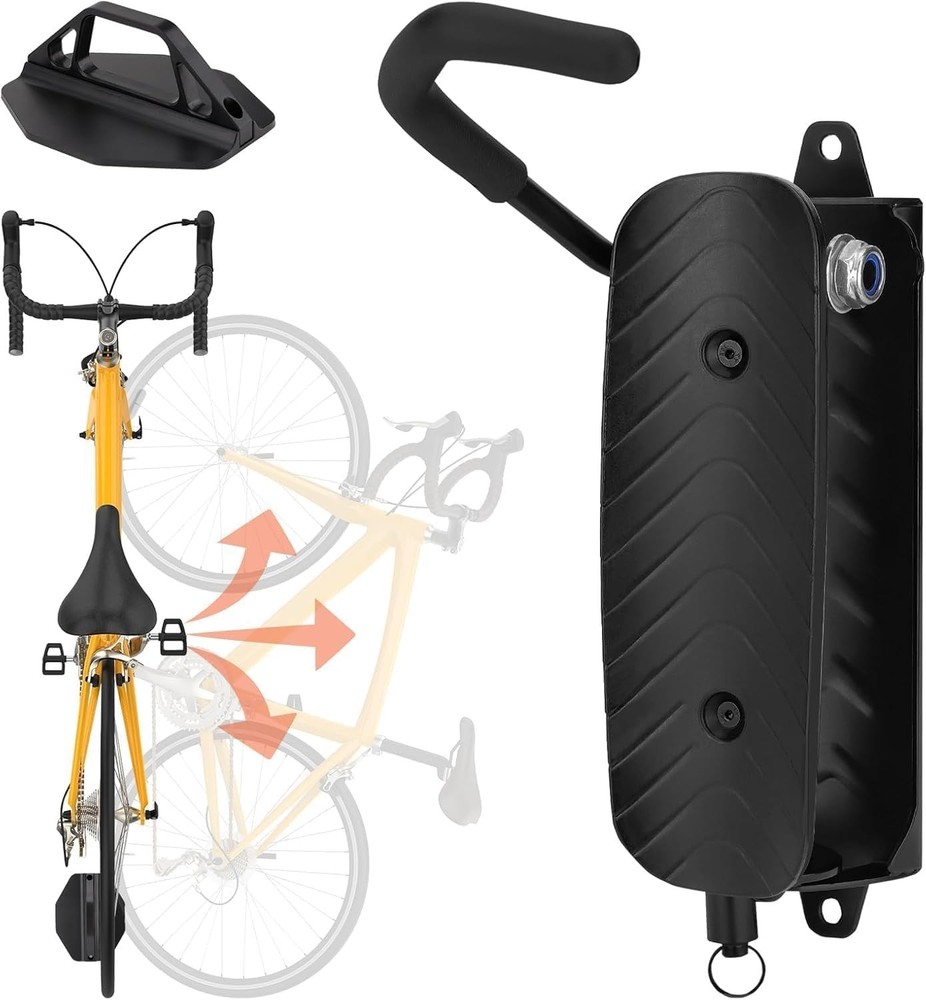 【Pefect Design For More Spacer for Bike Storage】- Swivel design with bearing system, swivel bike wall mount conveniently stores bikes in the center, left or right-angled position.The swivel system allows you to store bikes flush against the wall. Just hook the front wheel in place, rest the back wheel on the stabilizer, and then rotate the wall-mount bike hanger to the desired angle. 【 High Quality Ensures Safety and Reliability】- Our bike rack garage are made of heavy-duty solid steel and can hang bikes weighing up to 66 lbs/30kg. Providing reliable support for your bikes. The angled hook allows for easy mounting and dismounting. Rubber coated wall mount hook relieves pressure on the wheels, rims, and spokes and protects from unwanted scratches. 【Suitable for Various Vehicles and Occasions】- swivel bike wall mount is not suitable for bike wheels with tires and rims larger than >3.54 inches/90mm in depth.The wall mount bike rack garage fits most bikes including road, Mountain wall mount, BMX, cruisers, Ebike, and even bikes with fenders, Ideal for apartments, homes, garage bike storage, and sheds 【Easy and Stable Installation】-Our bike racks come with easy-to-follow instructions and all necessary mounting hardware for a hassle-free installation. The rack also includes a rear-wheel stop pad to prevent the rear tire from touching the wall, keeping your wall clean and organized! IMPORTANT - DO NOT install it on plasterboard or drywall surfaces unless there is a strong wooden stud behind it. 【Rubber Hook】- The rubber-coated wall-mounted bike hook offer maximum protection against wheel, rim, and spoke damage. The folding hook design allows for compact storage when the rack is not in use. Please note that it is not suitable for bikes with rim depths greater than 3 inches!