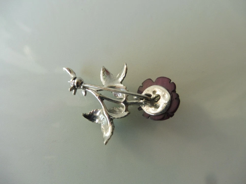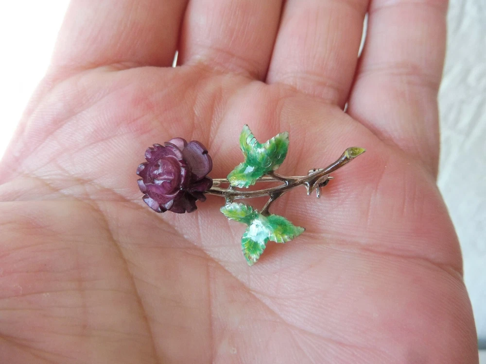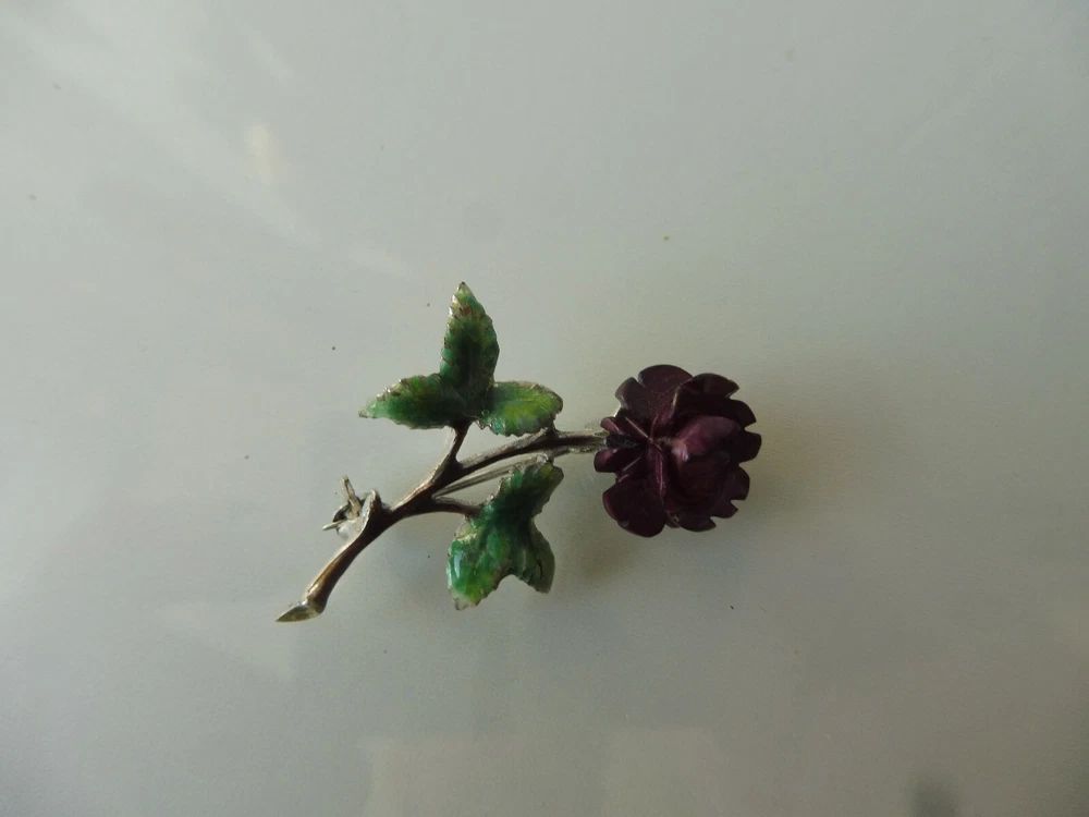 Very beautiful brooch, Rose, 925 silver, enameled, reddish, carved flower The description of this item has been automatically translated. If you have any questions, please feel free to contact us. Very nice brooch. Rose, 925 silver, with reddish (or purple, see photos), carved flower, partly. enameled, beautiful and finely crafted. Good condition (see photos). I don't know the old of the brooch. Dimensions: approx. 4cm long, 2.8cm wide, 1cm thick, weighs 4.1 grams. Very nice brooch! You can find many more beautiful, interesting, old and antique things in my other articles, take a look! Legal provisions Seller's notes This article is excluded from the General Product Safety Regulation 2023/988 (GPSR). Because they are either animal by-products, antiques, collector's items or works of art. Very nice brooch. Rose, 925 silver, with reddish (or purple, see photos), carved flower, partly. enameled, beautiful and finely crafted. Good condition (see photos). I don't know the old of the brooch. Dimensions: approx. 4cm long, 2.8cm wide, 1cm thick, weighs 4.1 grams. Very nice brooch! You can find many more beautiful, interesting, old and antique things in my other articles, take a look! Legal provisions Seller's notes This article is excluded from the General Product Safety Regulation 2023/988 (GPSR). Because they are either animal by-products, antiques, collector's items or works of art. Ausgewählte Suchfilter Brosche Produktart Brosche Metall Silber Marke siehe Beschreibung