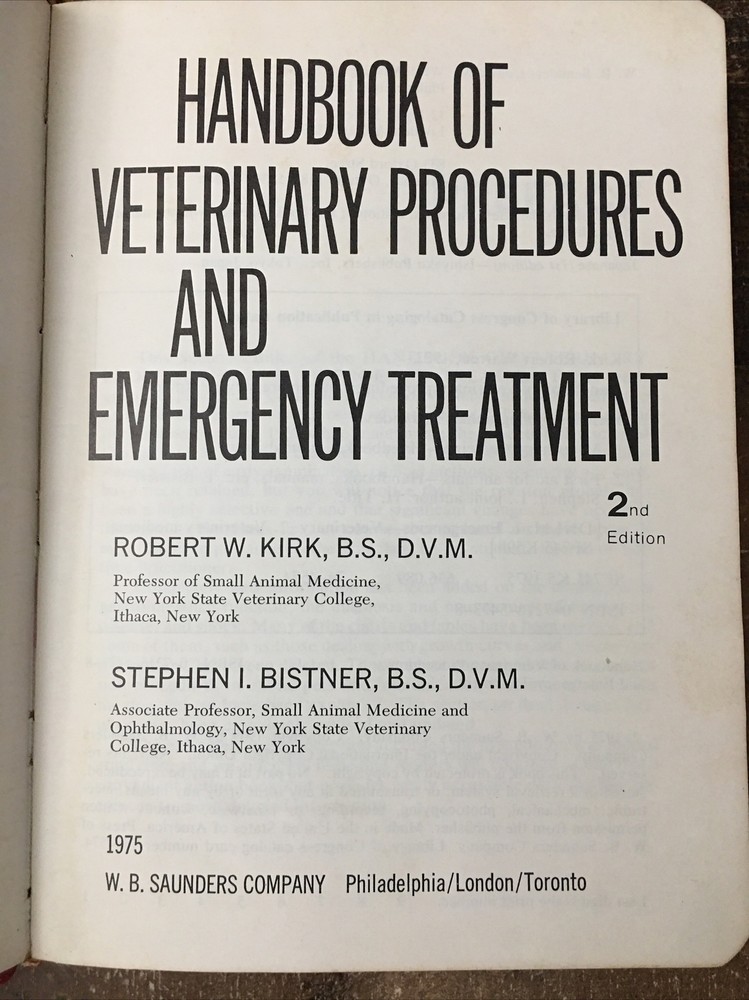 HomeVeterinary Procedures Emergency Treatment Handbook 2nd Ed 1975