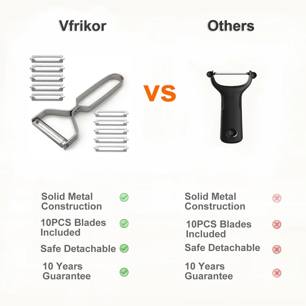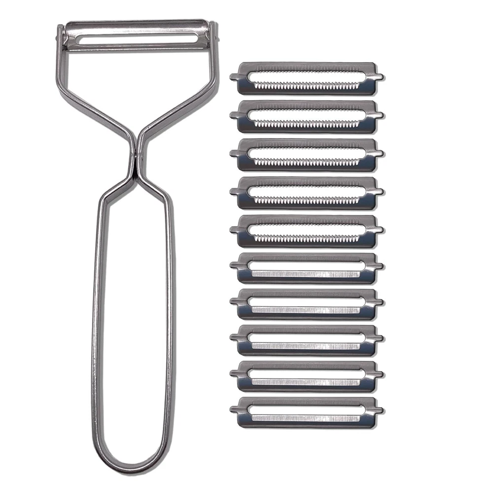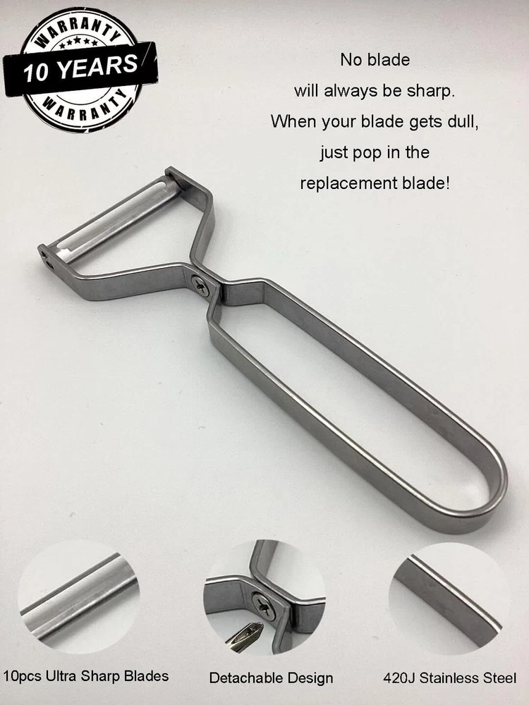 Vfrikor Metal Potato Peeler with 10PCS Replaceable Peeler Blades,Detachable Y S Features: 【10PCS Replaceable Blades】10PCS Ultra sharp spare peeler blades(2.0inch) and 1 pack potato peeler,say goodbye to dull blades forever. 【Detachable Design】Vegetable peeler is fixed by a single screw.It is easy and safe to replace a new blade. 【Multi-Purpose】We provide two types of replaceable peeler blades(5pcs standard blades & 5pcs serrated blades) to meet all your peeling needs. 【Easy to Clean】The sample design makes cleaning a breeze. Just need a quick rinse under the tap.So easy! 【Premium Stainless Steel】The fruit peeler is made of strong 420J stainless steel.We guarantee a long-term use,If you have any question,please feel easy to contact us. Features: 【10PCS Replaceable Blades】10PCS Ultra sharp spare peeler blades(2.0inch) and 1 pack potato peeler,say goodbye to dull blades forever. 【Detachable Design】Vegetable peeler is fixed by a single screw.It is easy and safe to replace a new blade. 【Multi-Purpose】We provide two types of replaceable peeler blades(5pcs standard blades & 5pcs serrated blades) to meet all your peeling needs. 【Easy to Clean】The sample design makes cleaning a breeze. Just need a quick rinse under the tap.So easy! 【Premium Stainless Steel】The fruit peeler is made of strong 420J stainless steel.We guarantee a long-term use,If you have any question,please feel easy to contact us. eBay integration by