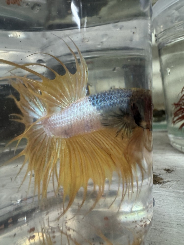 The Crown tail Male Betta Live Fish is a stunning and aggressive Betta species suitable for male owners. This live fish is perfect for those looking to add a unique and vibrant pet to their aquarium. With its crown tail fin and striking appearance, this Betta is sure to make a statement in any tank.