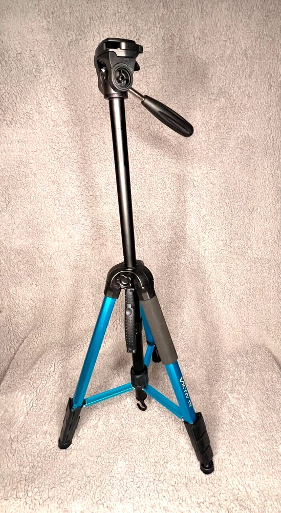 Victiv T72 Tripod/Monopod Blue Aluminum With Carry Bag 69.5" tall fully extended 21" lowest usable height 22" folded Monopod is approximately 63" tall Weight is approximately 3lb 11oz