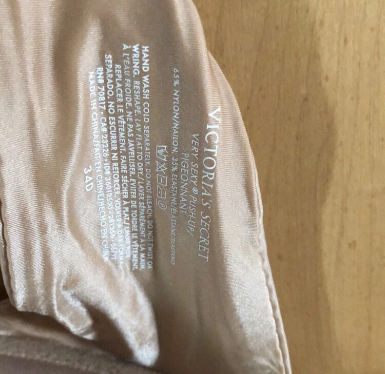 Enhance your confidence and style with the Victoria's Secret Very Sexy push up padded Bra in size 34D. This beige bra features underwired support and a push-up design to create a flattering silhouette. Perfect for everyday wear or special occasions, this bra from the iconic Victoria's Secret brand is a must-have addition to your lingerie collection. Elevate your look and feel fabulous in this stylish and comfortable bra.