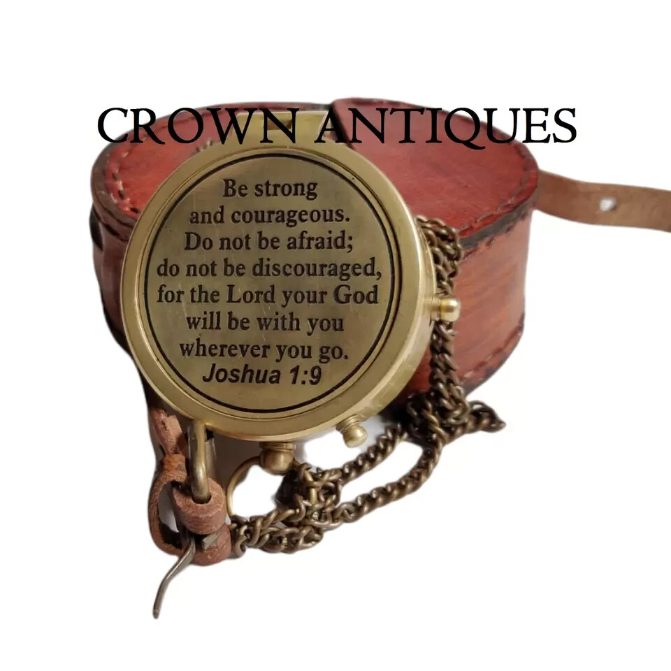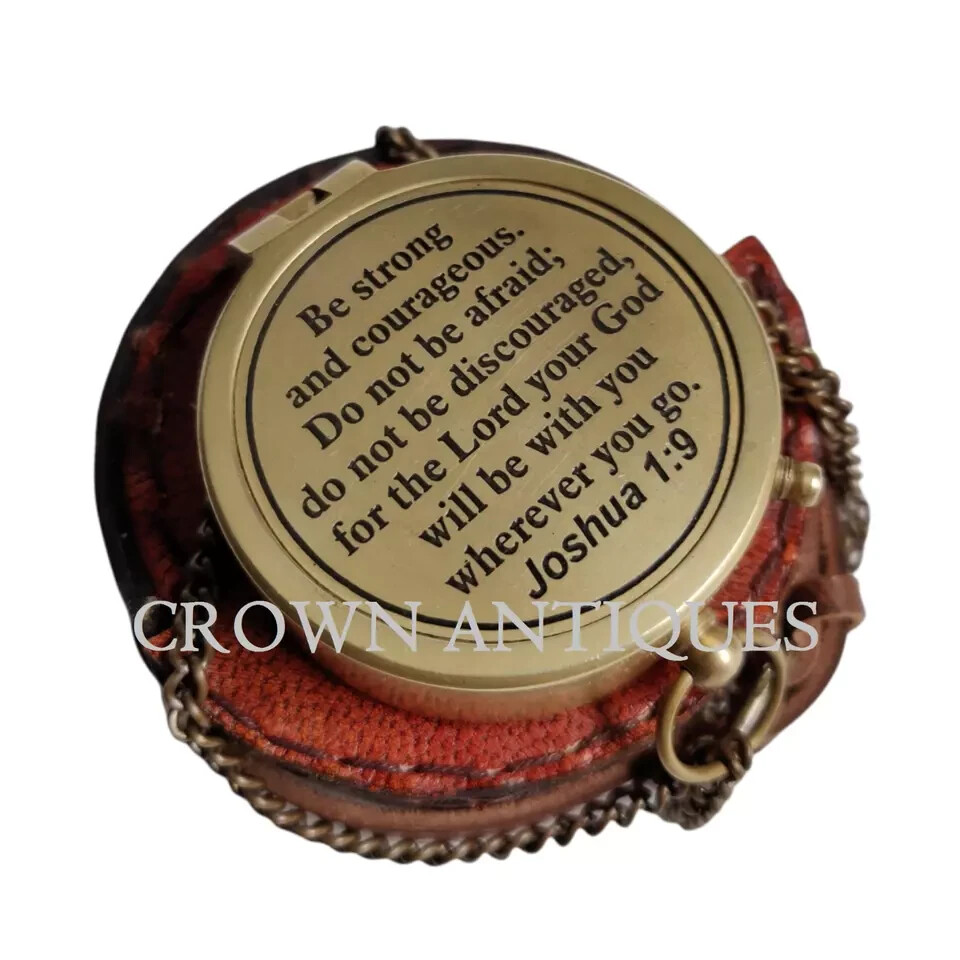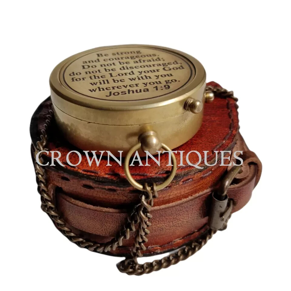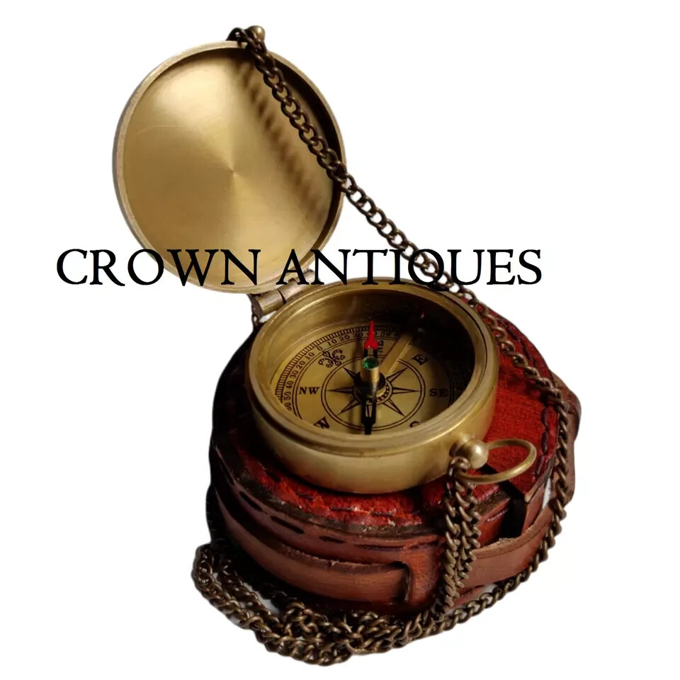 VINTAGE BRASS POCKET COMPASS WITH PREMIUM LEATHER CASE PRODUCT DESCRIPTION - APPROX MEASUREMENTS DIAMETER - 2 INCH / 5cm HEIGHT - 0.5 INCH / 1.25cm MATERIAL - BRASS, GLASS & LEATHER FINISH - ANTIQUE BRASS FINISH (as shown in pic). WEIGHT - 120gm THIS COMPASS COMES WITH VERY BEAUTIFUL PREMIUM LEATHER CASE AND CHAIN. FULLY HANDCRAFTED ENGRAVED COMPASS. THIS COMPASS IS MAINLY USE FOR DIRECTION. USE THIS COMPASS IN TRACKING AND HIKING AS WELL. ONE BEST GIFT FOR YOUR LOVED ONES BUY WITH CONFIDENT 100% HANDMADE HANDCRAFTED IN INDIA NOT AN ANTIQUE REPLICA PRODUCT