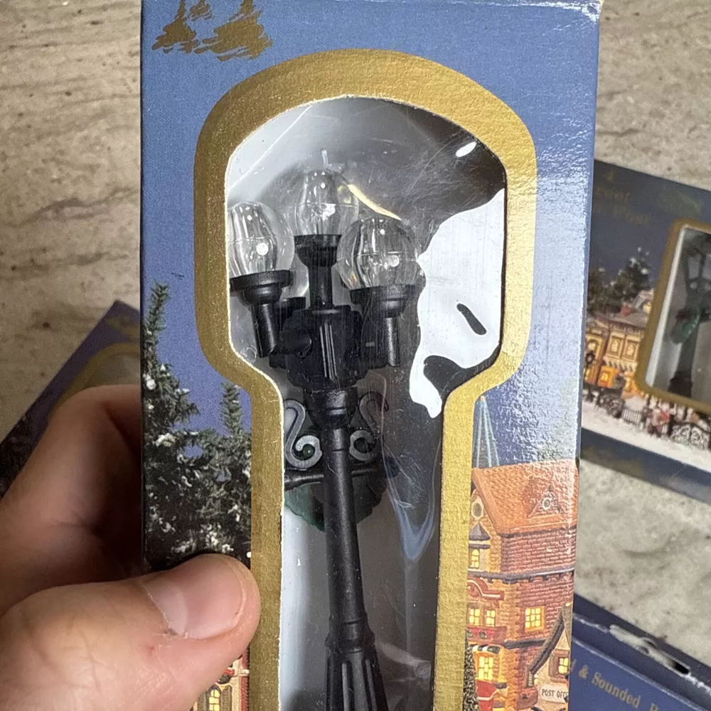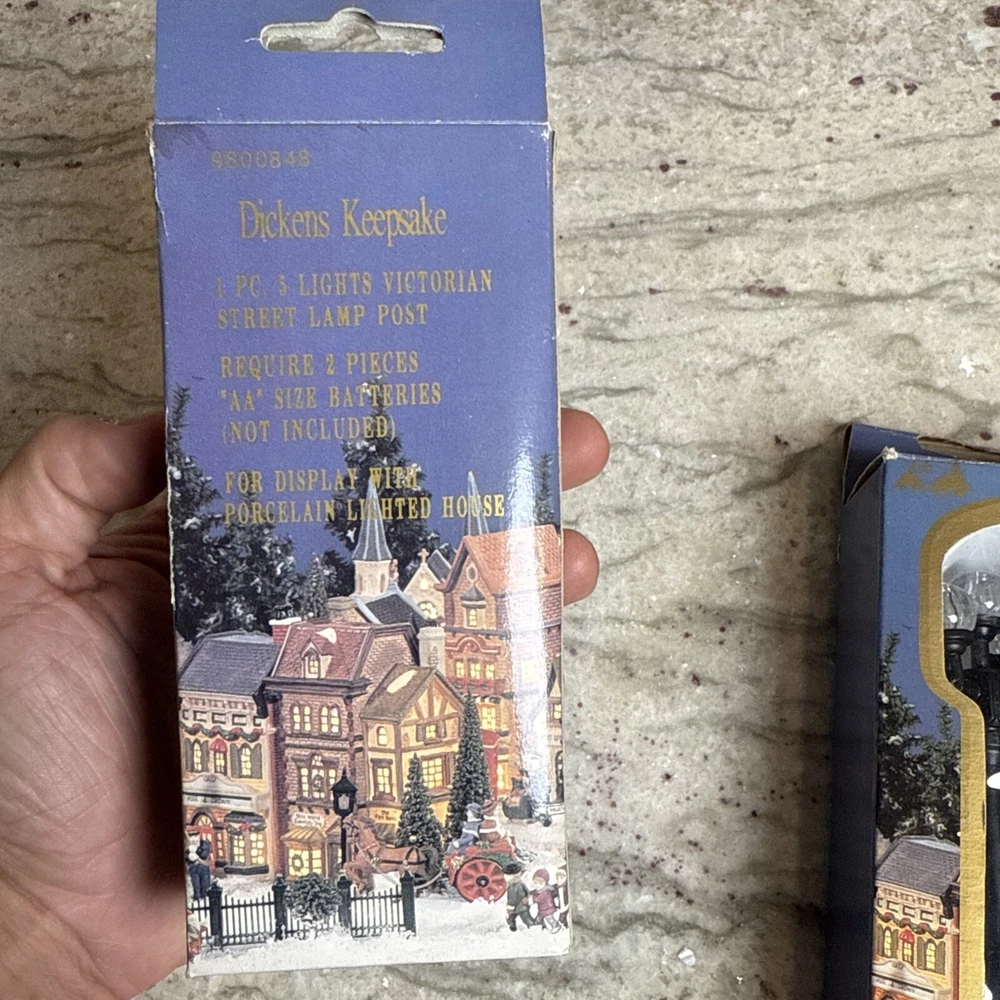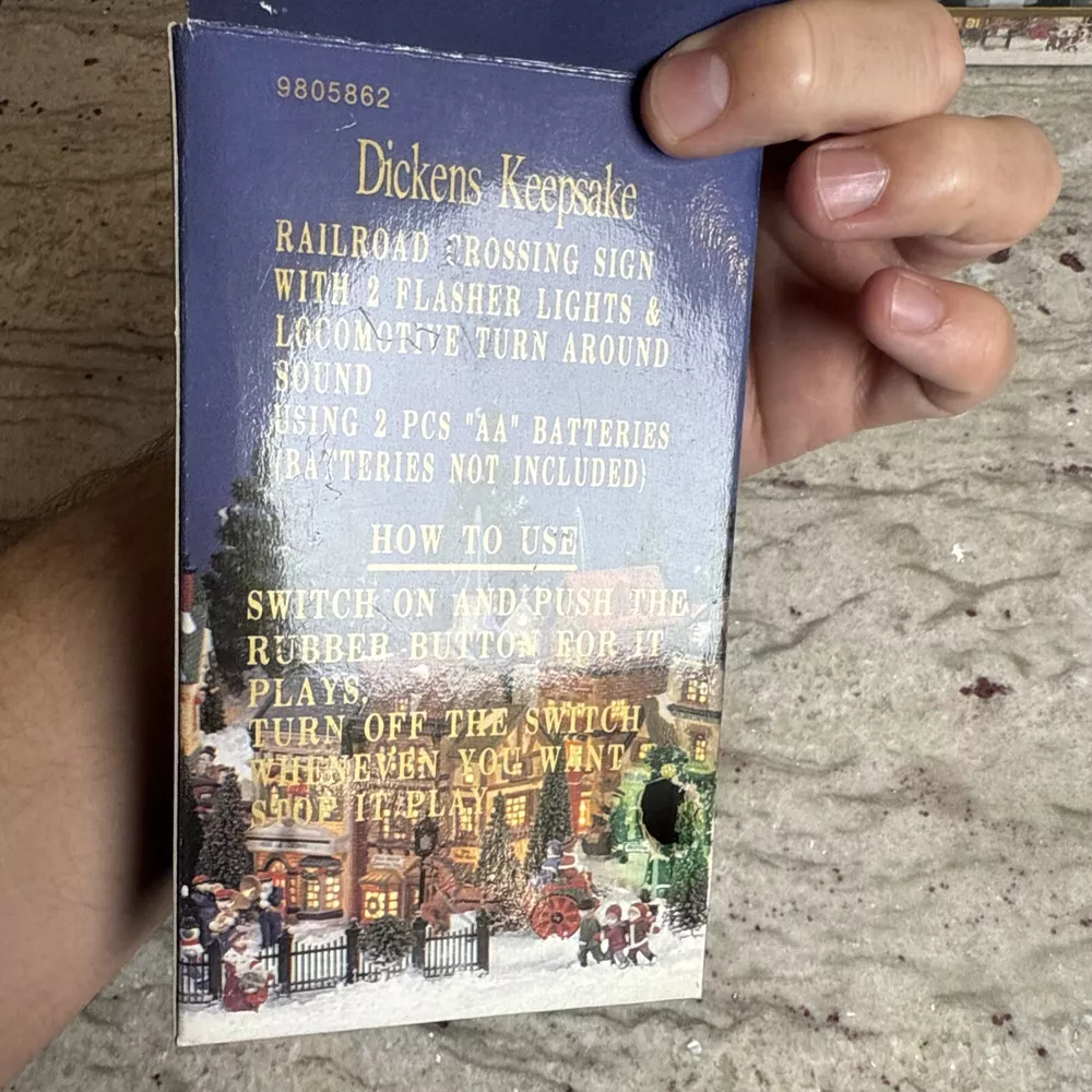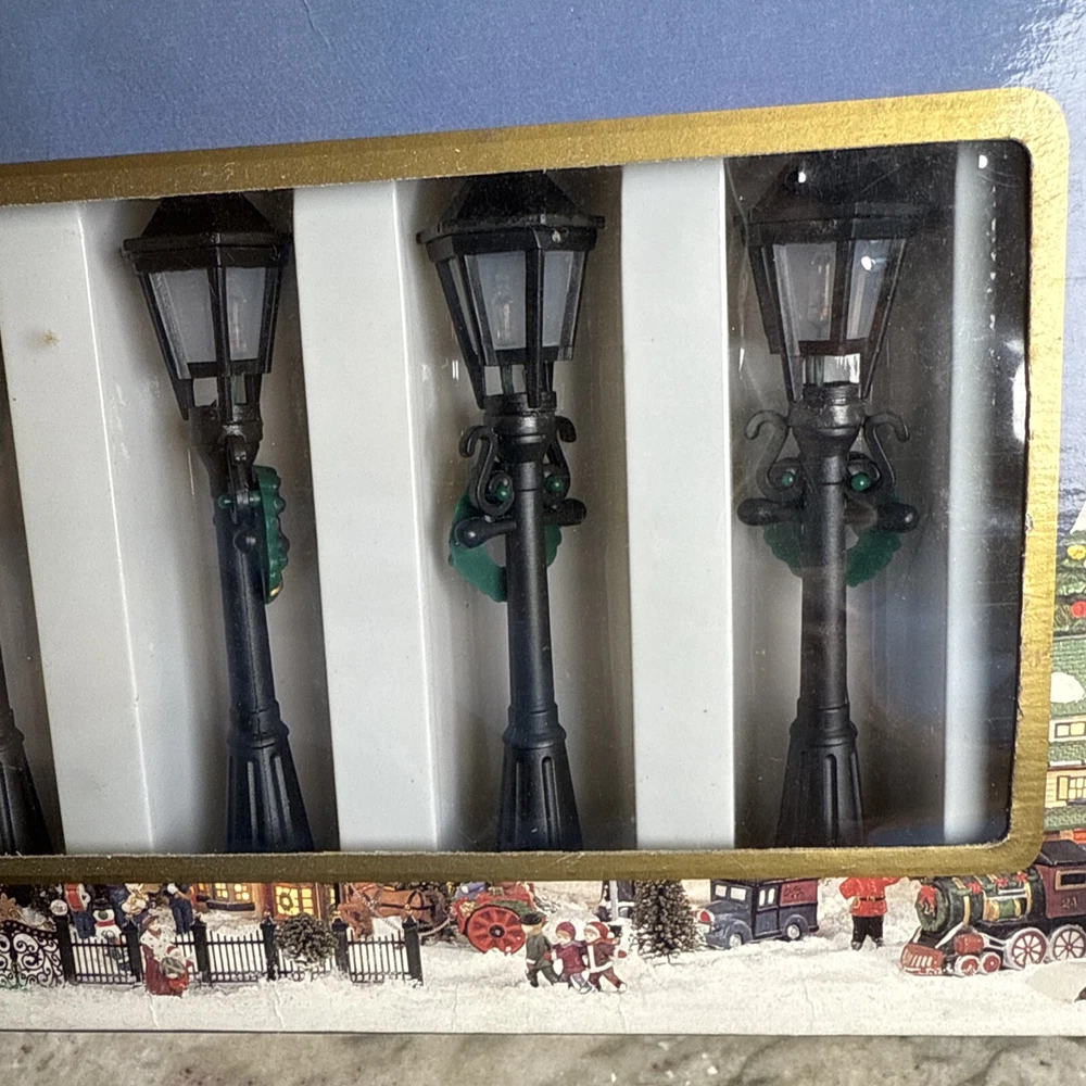 Dickens Keepsake set of 4 Lamp Posts, Railroad Crossings Sign/ 2 5-Light Post. Shipped with USPS Ground Advantage.