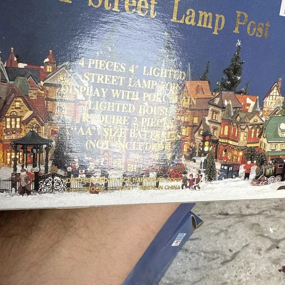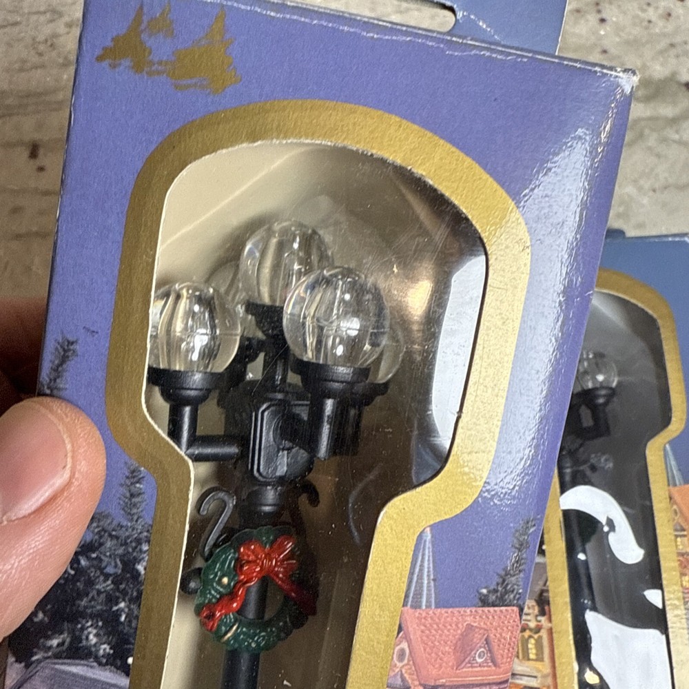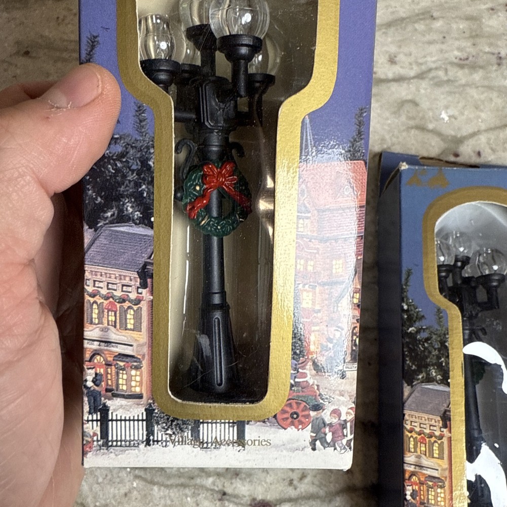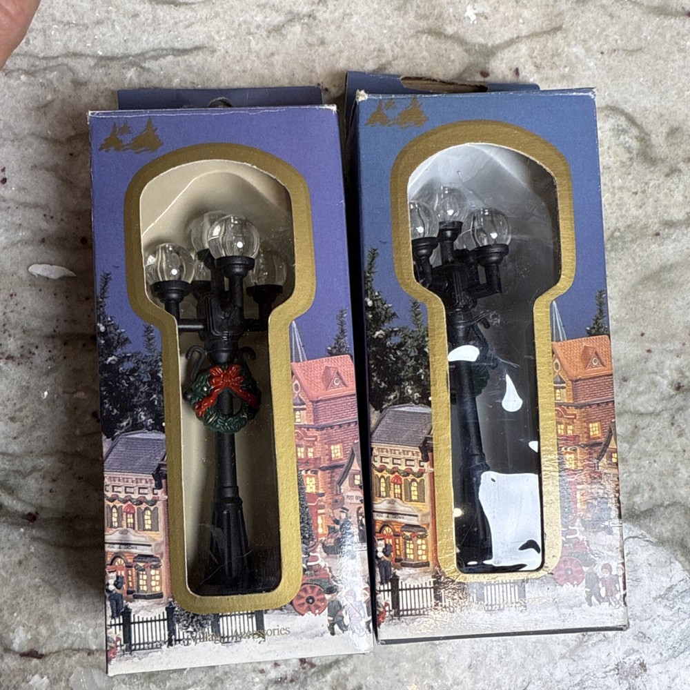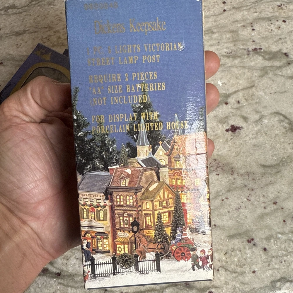 Dickens Keepsake set of 4 Lamp Posts, Railroad Crossings Sign/ 2 5-Light Post. Shipped with USPS Ground Advantage.