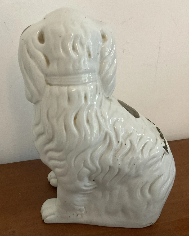 Victorian STAFFORDSHIRE COPPER LUSTRE SPANIEL DOG Split/Separate Leg Left Hand dog No cracks or chips Iconic ornament Any problems please get back to me I have a good reputation Thank you for lookingWe have moved to a smaller house and 40 years of accumulated items need to be sold in excellent condition Swift postage UK Seller see picture Thank you for looking