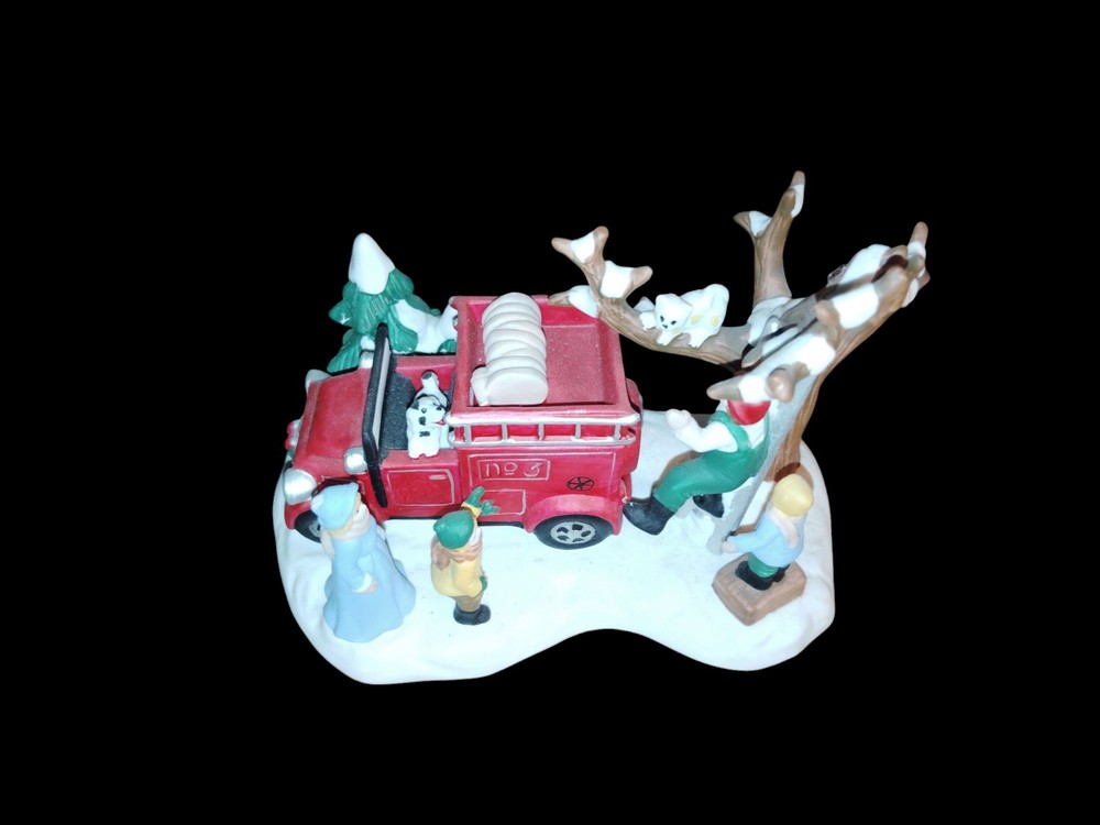 The Victorian Village Collectibles 2000 Edition Old Towne Fire Engine is a hand-painted porcelain Christmas village piece featuring a Victorian-style fire engine. Measuring 6.5 inches in length and 4.75 inches in height, this collectible item is part of the Victorian Village collection and is themed around fireman rescue. Perfect for any room, entryway, foyer, bedroom, or dining room, this multicolor piece is a unique addition to any holiday decor. This original 2000 edition from China captures the charm and nostalgia of a bygone era. this item is pre-owned pictures are part of description