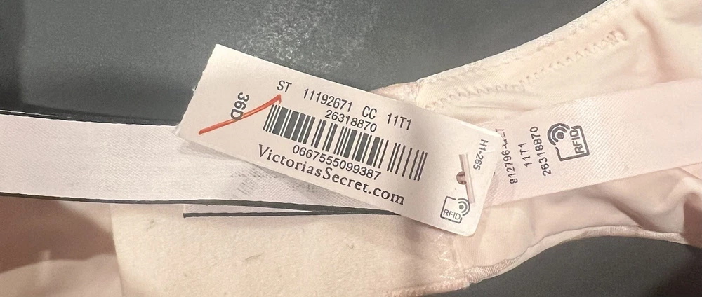This Victoria's Secret bra is a T-shirt style in size 36D, featuring a pink striped design with lightly lined cups for a comfortable fit. It has a bra strap closure with underwired support, made from a polyamide blend fabric for a soft feel against the skin. The demi style offers a classic and timeless look, perfect for everyday wear. This new-with-tags bra is part of the Victoria's Secret Body By Victoria collection, designed for women seeking both style and comfort in their undergarments.