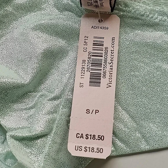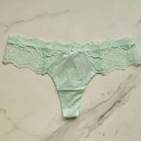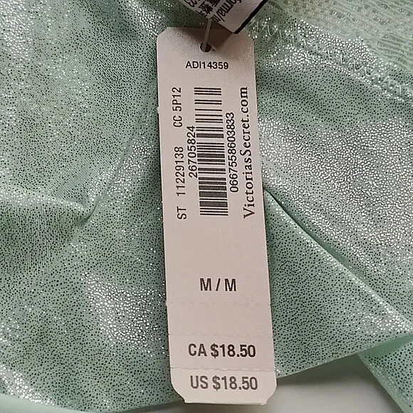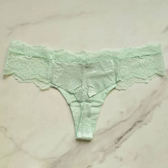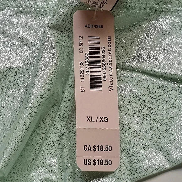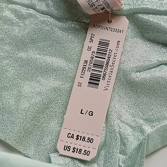All photos are taken by Goob's Closet & Boutique and may not be reused without permission. Goob's Closet & Boutique lists on multiple platforms. If you choose to wait or "Watch", the listing may sell out on another platform, and it will no longer be available for purchase on eBay without notice to you. Imagine a thong-style panty with minimal back coverage and a low rise, making it playful and oh-so-alluring. The stretch floral lace at the waist adds a touch of femininity, and here's the best part – smooth stretch shimmer microfiber panels that not only look stunning but also feel incredibly comfortable. It's like a perfect blend of style and comfort. And that center bow detail? It's so flirty and pulls the whole look together. And the 100% cotton gusset ensures breathability and comfort – perfect for everyday wear. Details Thong Style Minimal Back Coverage Low Rise Stretch Floral Lace at Waist Smooth Stretch Shimmer Microfiber Panels Center Bow Detail Made Partially from Recycled Materials 100% Cotton Gusset Style No. 11229138 Color: Misty Jade Shimmer CC (Color Code): 5P12 Material Body: 82% Recycled Polyamide, 18% Elastane Lace: 58% Recycled Polyamide, 29% Polyamide, 13% Elastane Gusset: 100% Cotton Care Hand wash Measurements Victoria's Secret Size Small (S) will fit US Size 4-6, Waist 26-27 inches, Hips 35.5-37.5 inches best. Victoria's Secret Size Medium (M) will fit US Size 8-10, Waist 28-29 inches, Hips 38.5-39.5 inches best. Victoria's Secret Size Large (L) will fit US Size 12-14, Waist 30.5-32 inches, Hips 41-42.5 inches best. Victoria's Secret Size Extra Large (XL) will fit US Size 16-18, Waist 34-36 inches, Hips 44.5-46.5 inches best.