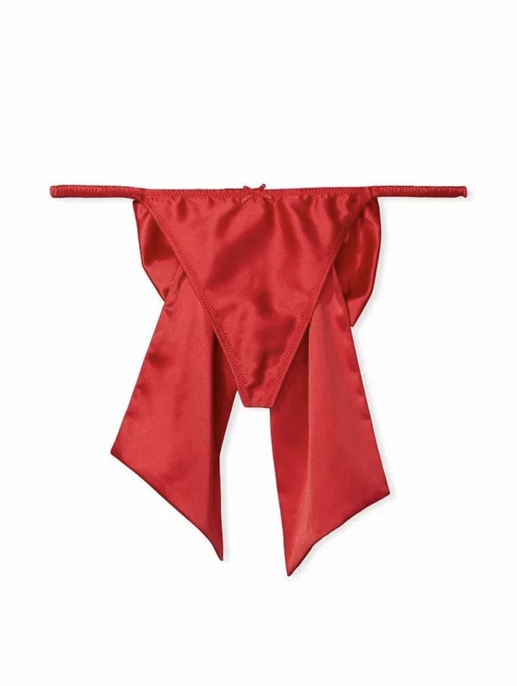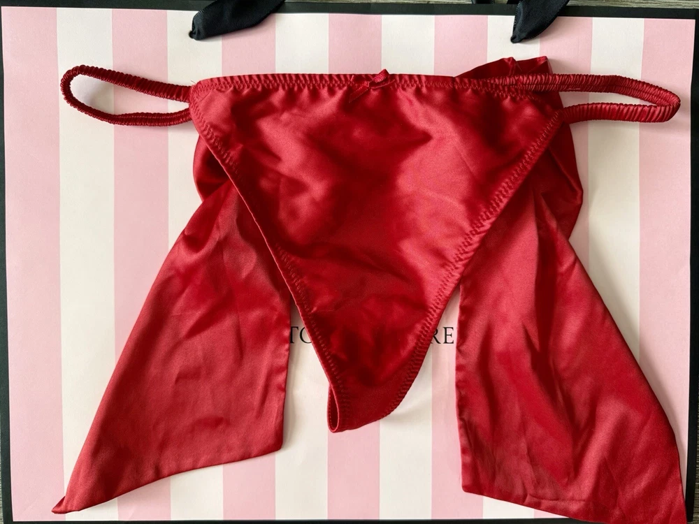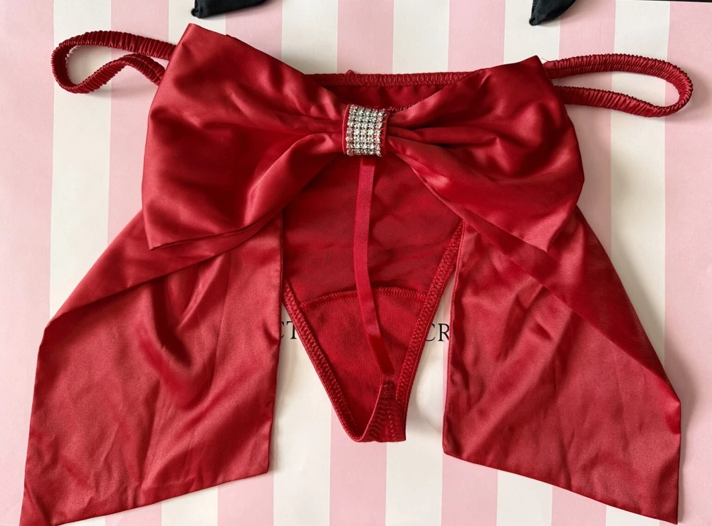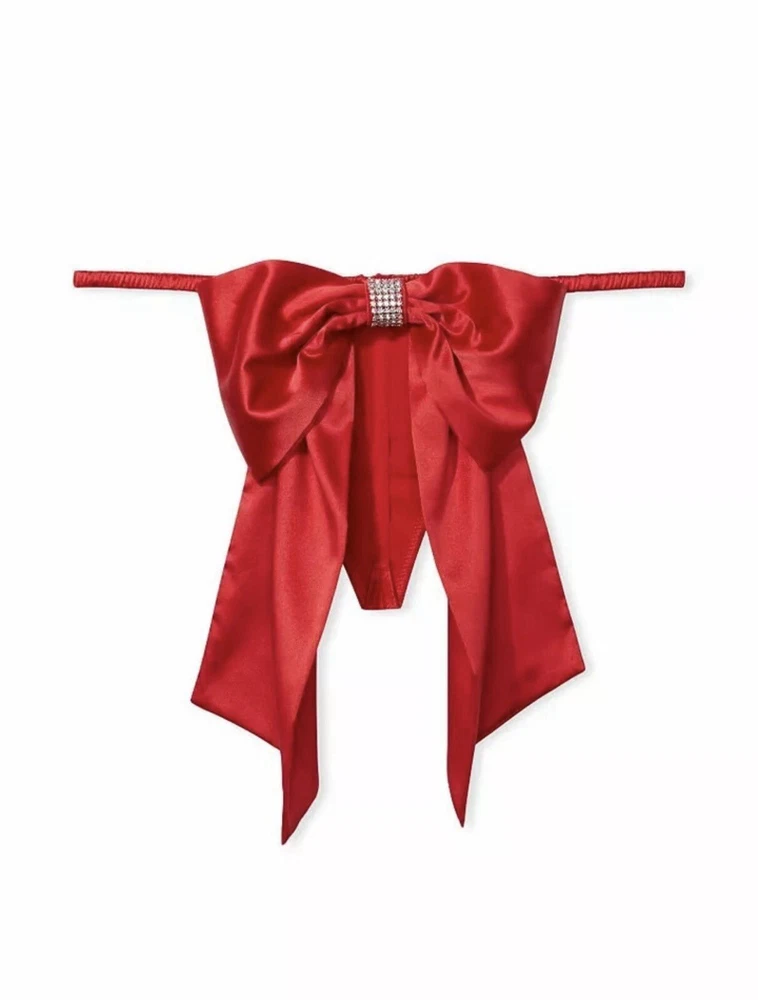 Victorias Secret Dream Angels Red Satin Bow V-String Panty L Rhinestone Accent. Condition is New with tags. Shipped with USPS Ground Advantage.
