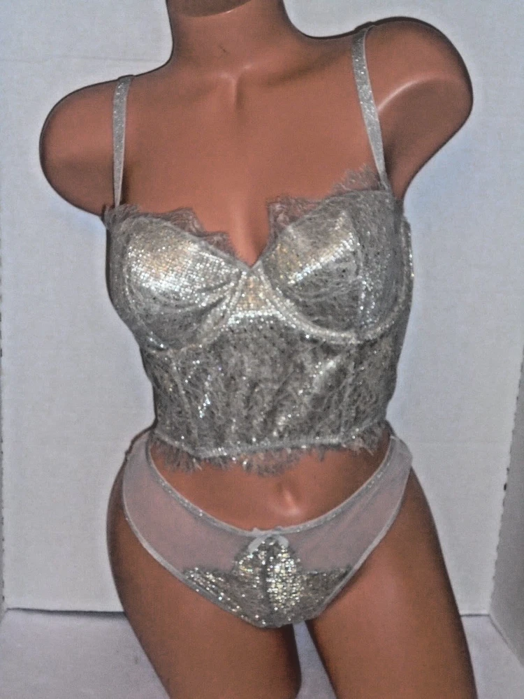 Underwire Type:UnderwireStyle:Bra SetsDepartment:WomenType:Bra Setgtin13:Does not applySize:32CUPC:Does not applyFeatures:LinedMaterial:poly elastaneBrand:Victoria's SecretColor:Silver