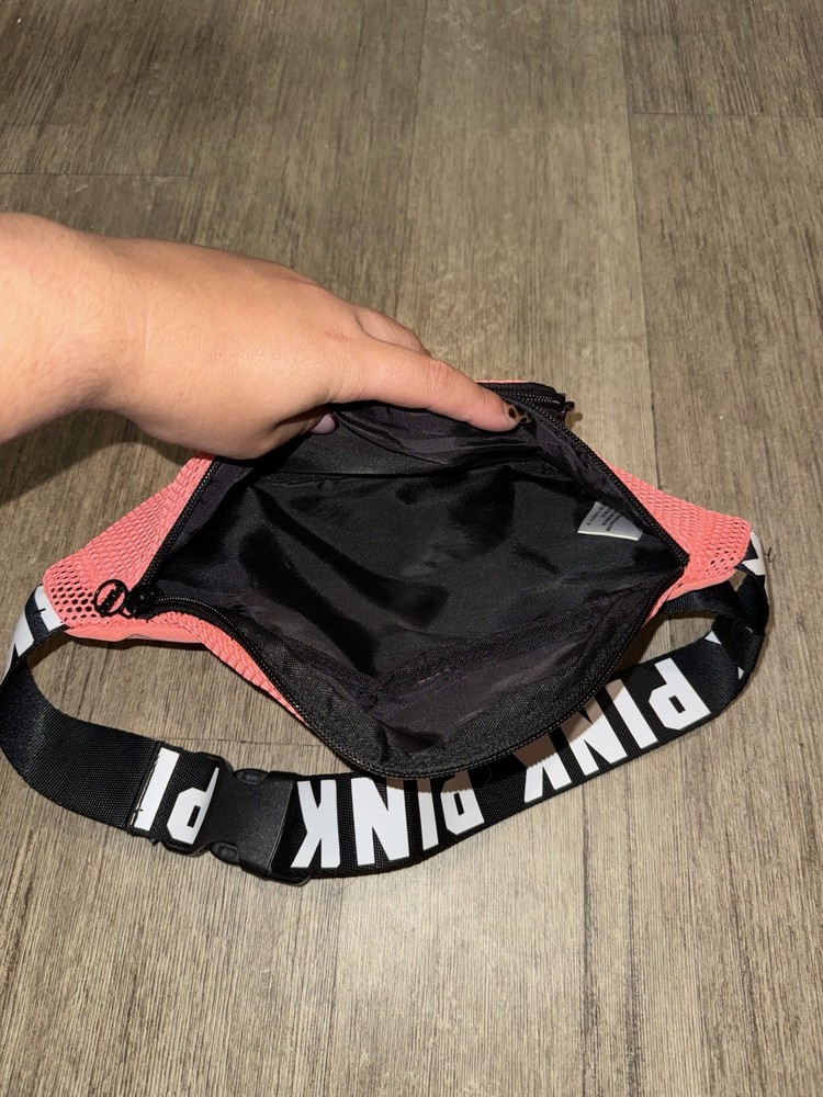 Crafted by Victoria's Secret, this PINK Mesh Fish Net Fanny Pack offers a playful yet chic accessory for women on the go. It features a vibrant pink exterior, complemented by a sleek black lining, embodying the fun and fashionable essence of the Victoria Secret Love Pink product line. The belt bag design provides a practical and stylish way to carry essentials, with a mesh exterior that adds a touch of allure to the casual silhouette. Perfect for those who appreciate a blend of elegance and convenience, this fanny pack is a versatile addition to any wardrobe.