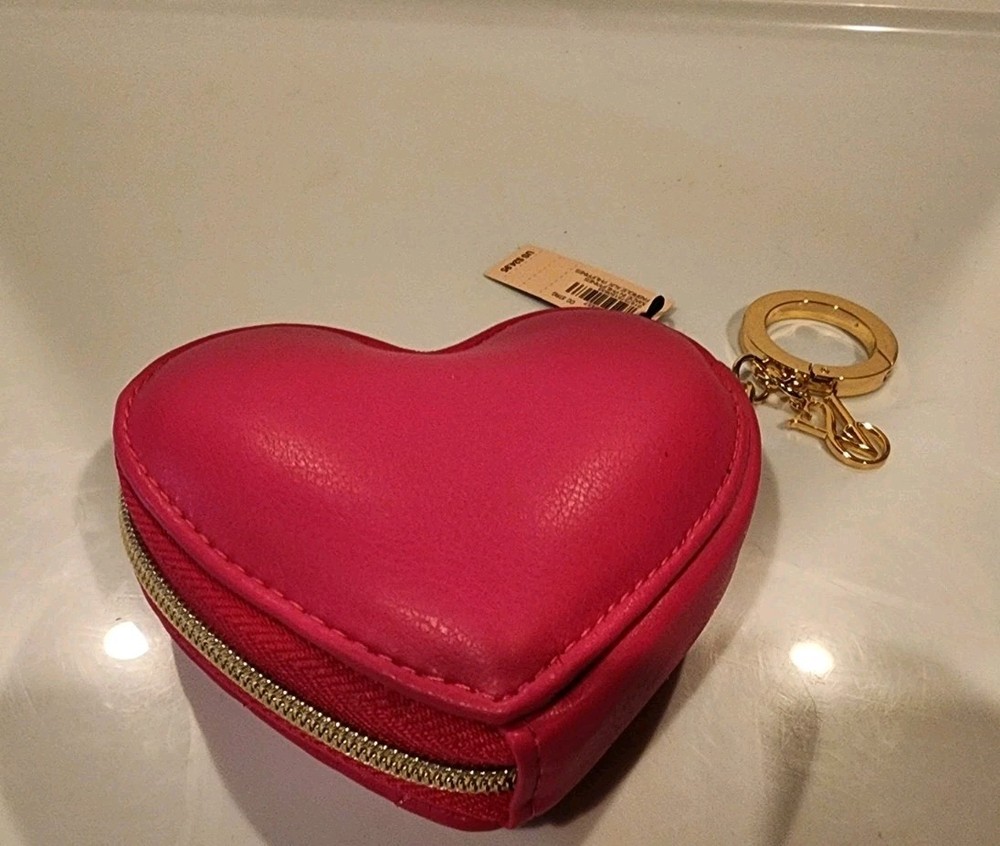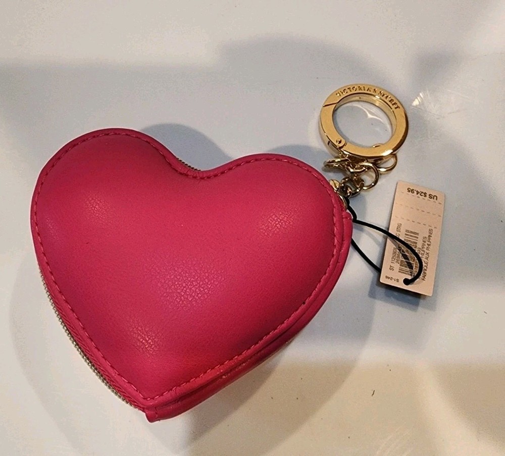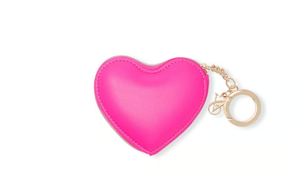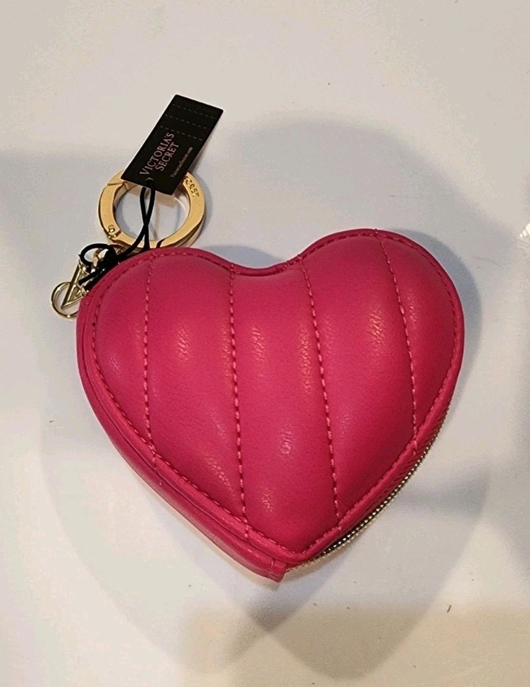 VICTORIA'S SECRET HEART POUCH KEYCHAIN COIN BAG WALLET - Pink