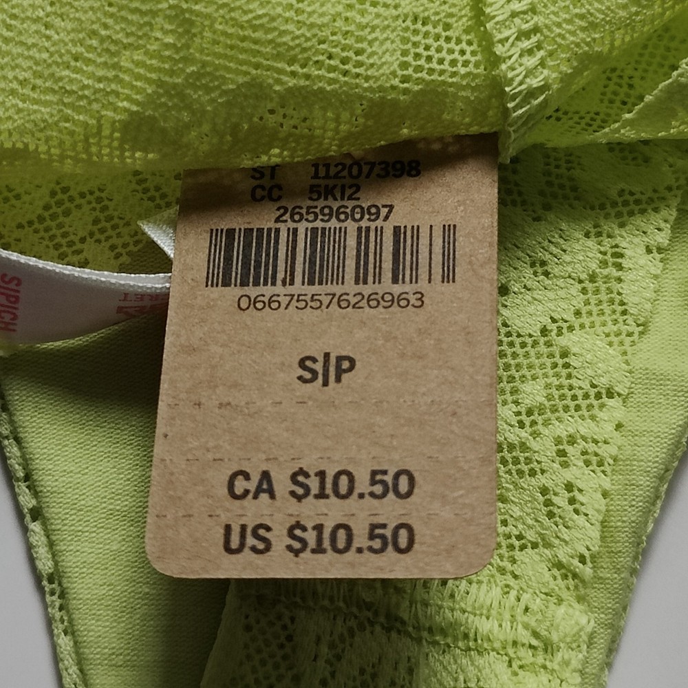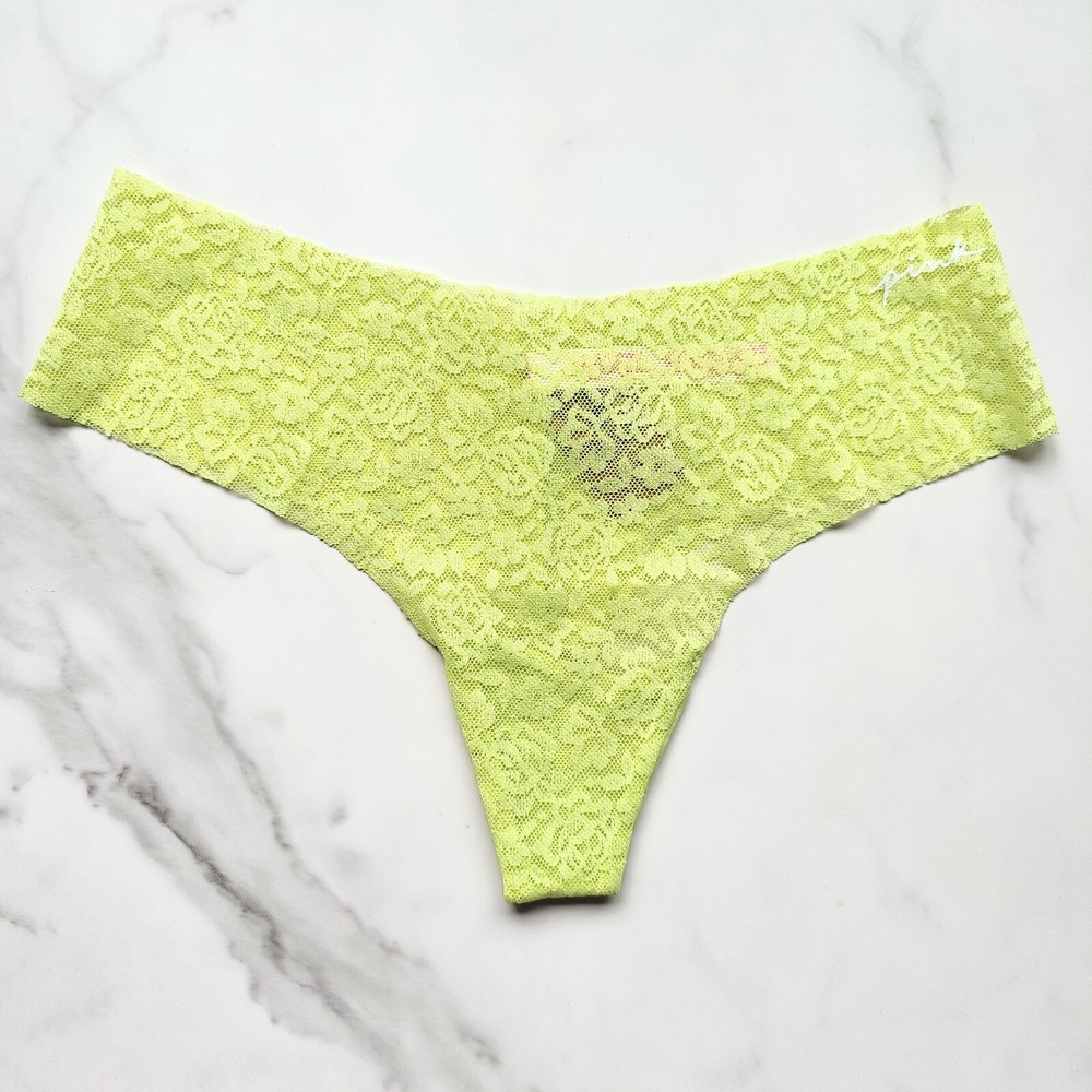 All photos taken by Goob's Closet & Boutique and may not be reused without permission. This thong style panty provides minimal back coverage and a low rise, making it an ideal choice for those who prefer no-show lines. Crafted from soft, breathable floral lace, it ensures a comfortable and light feel. Designed with 4-way stretch fabric, this panty moves with your body, offering flexibility and comfort throughout the day. The raw-cut edges create a smooth, no-show look, eliminating any visible panty lines for a flawless finish under clothes. Additionally, it’s made partially from recycled materials, combining eco-consciousness with modern style. Details Thong Style Minimal Back Coverage Low Rise No-Show Floral Lace Body No Panty Lines 4 Way Stretch Fabric Breathable Raw-Cut Edges Made Partially From Recycled Materials Style No. 11207398 Color: Green Spring Color Code (CC): 5KI2 Material Body: 42% Recycled Polyamide, 38% Polyamide, 20% Elastane Gusset: 91% Cotton, 9% Elastane Care Machine Wash Measurements PINK Victoria's Secret Size Small (S) will fit US Size 4-6, Waist 26-27 inches, Hips 36.5-37.5 inches best. PINK Victoria's Secret Size Medium (M) will fit US Size 8-10, Waist 28-29 inches, Hips 38.5-39.5 inches best. PINK Victoria's Secret Size Large (L) will fit US Size 12-14, Waist 30.5-32 inches, Hips 41-42.5 inches best. PINK Victoria's Secret Size Extra Large (XL) will fit US Size 16-18, Waist 34-36 inches, Hips 44.5-46.5 inches best.