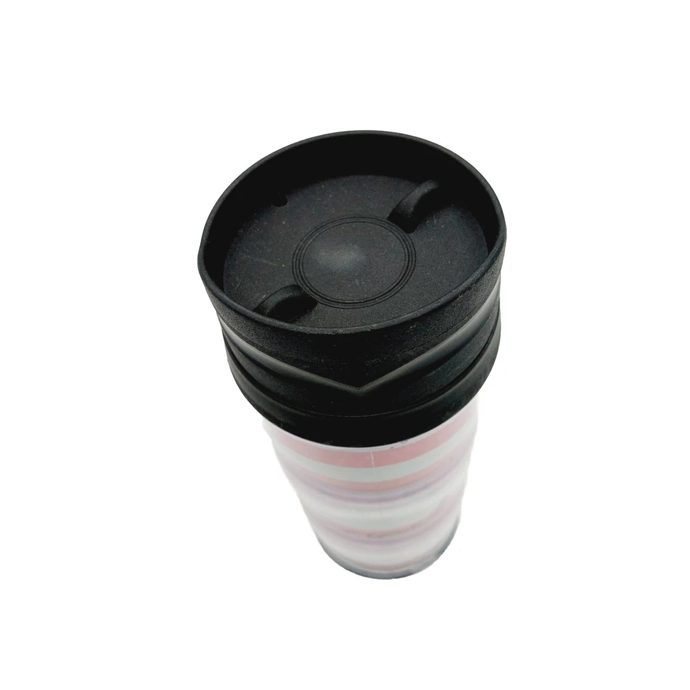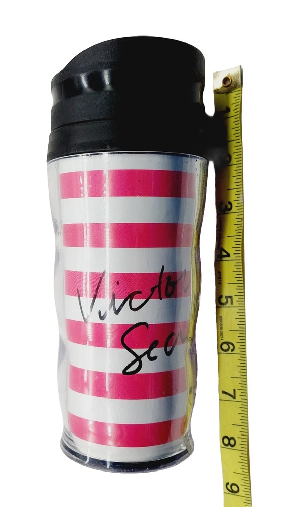 Victoria`s Secret Pink White Striped Tumbler Coffee Cup Mug Thermos Hot / Cold