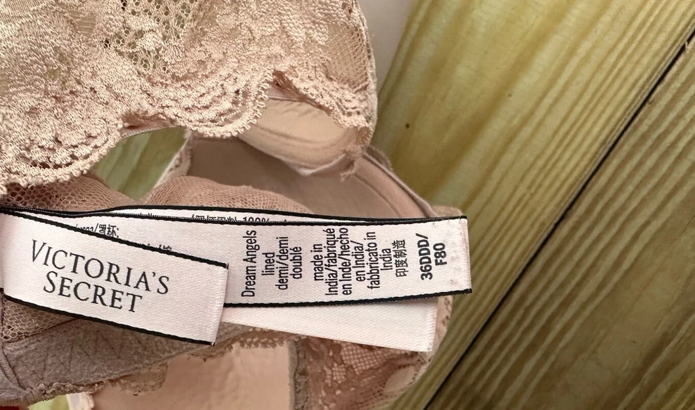 Victoria's Secret Pink Wire Bra Padded Lace Back Size 36DDD/F80