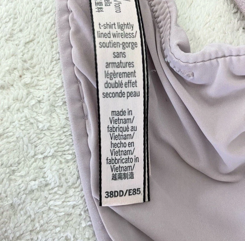 Soft, wireless cups keep their shape in a t-shirt bra so soft and comfy, you'll never want to take it off. Lightly-lined for shape Wireless cups Straps & Hooks Adjustable straps Back closure Double row of hook-and-eye closures Can be worn classic or crossback Hand wash Imported Body/wing lining: 76% polyamide, 24% elastane Size 38DD Smoke free home