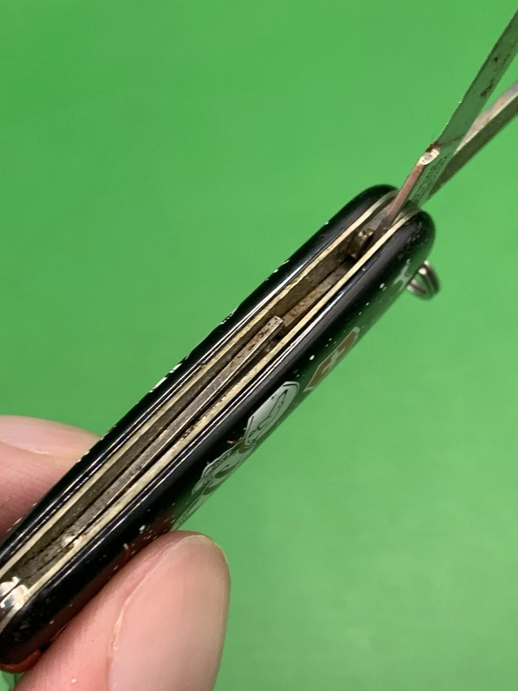 Used Victorinox knife. Scales have minimal to no wear on them and the blades may need to be sharpened. The nail file opening mechanism is broken and won’t lock into place and the nail file can’t close all the way due to the damage. No toothpick. See pictures for overall cosmetic condition. By purchasing you affirm that you are of legal age and aware of all applicable laws.