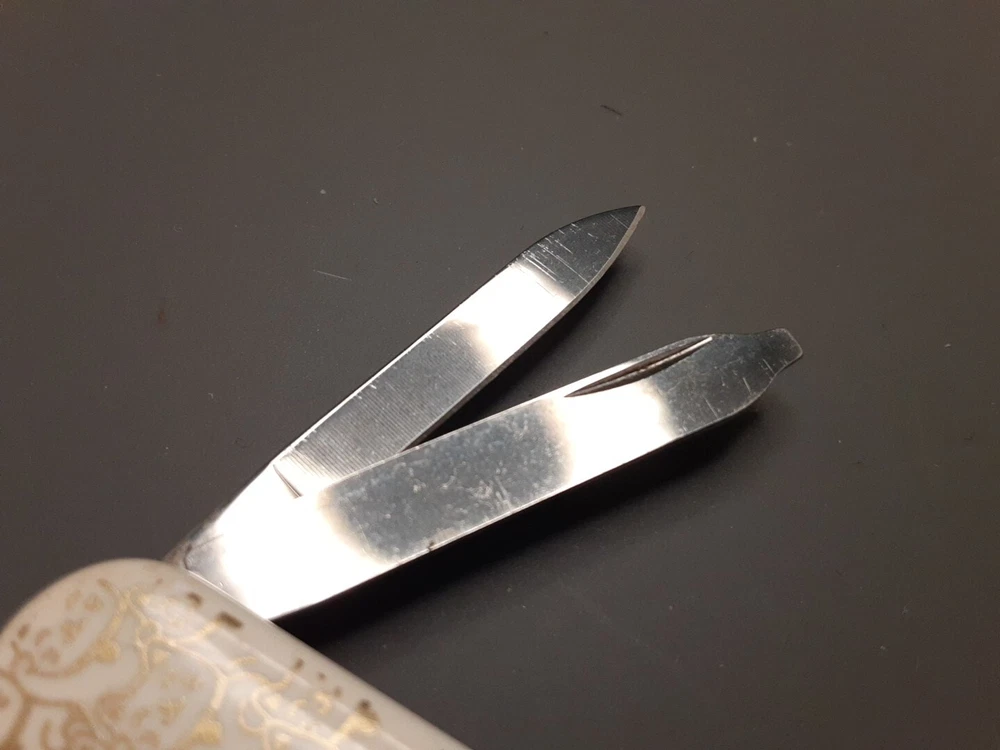 Knife is in good condition. Blades, tools and scales show signs of use such as scratches. Lock up on all tools are strong with no play. All imperfections, flaws and defects are shown in pictures. Please see all pictures and use zoom function to see full condition of Item. Item May Need To Be Cleaned Further. Blade May Need To Be Sharpened.