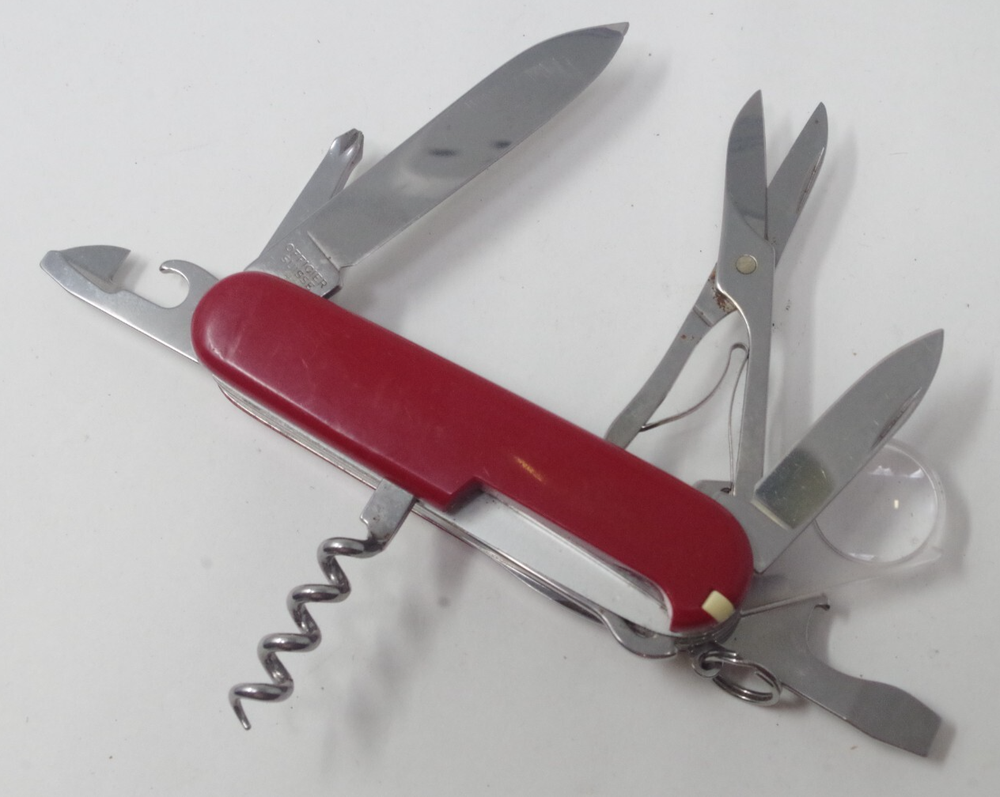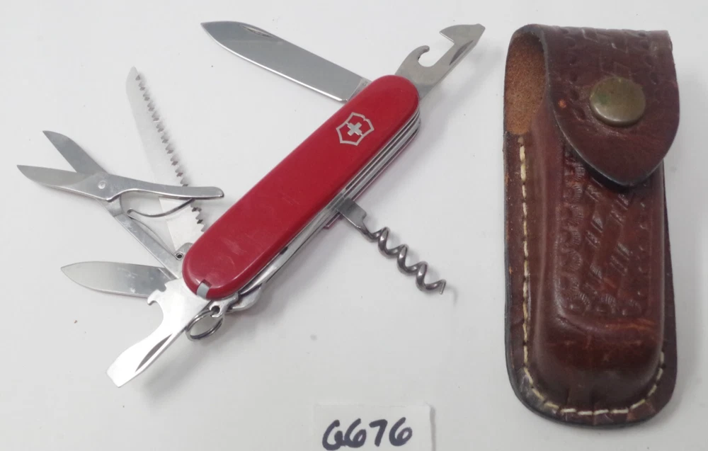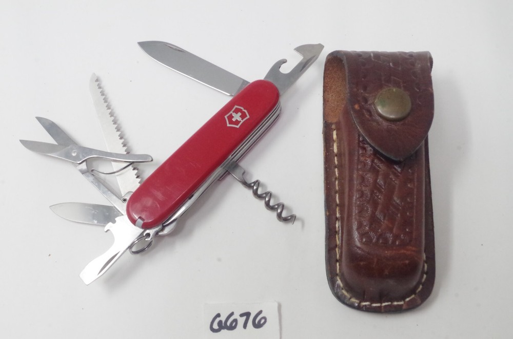 Your New HQ for Discounted Pocket Knives! This Lot: This auction is for a previously owned Victorinox Explorer Swiss Army Knife Red with leather case. The pictures are of the actual tools you will receive. The joints all function smoothly. Please examine the photos carefully so you know exactly what you are buying. Please check out all my other knife listings! Features and further details We do our best to personally test every knife and tool we sell. Our aim is to make the occasional flaw obvious/clear in the photos Used knives?: We do our best to personally test every knife and tool we sell. Our aim is to make the occasional flaw obvious/clear in the photos. What if we miss something?: We ocassionally make mistakes. We wish we didn't. But that's when I step in and make sure you walk away happy. If you are unpleasantly surprised by what you recieve, I will always refund/return/replace to make it right. Package protection: We waterproof and protect every knife we ship. Contact us We work to quickly answer all your questions! Payment We add nicer gifts whenever people pay for multiple listings at the same time. This saves us money with combined shipping and we bounce the rewards back to you. I think you'll be pleasantly impressed. Shipping Your tracking number is always uploaded to your order page as soon as we print the label. It seems currently that USPS is having some hang-ups as they work to improve their efficiency. If your package is arriving slow, definitely check the tracking first. Multiple sellers lately are finding their package hung up just a few states away and arriving 2-3 days late. Returns We aim to have a very liberal return policy. We'll make it happen for you. Free eBay listing template designed by © dewiso.com .