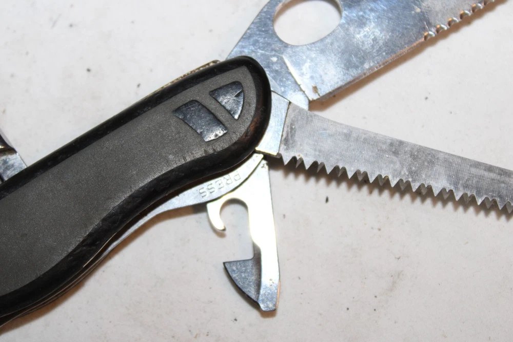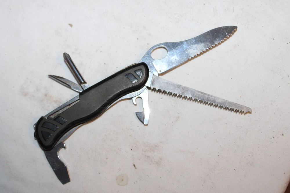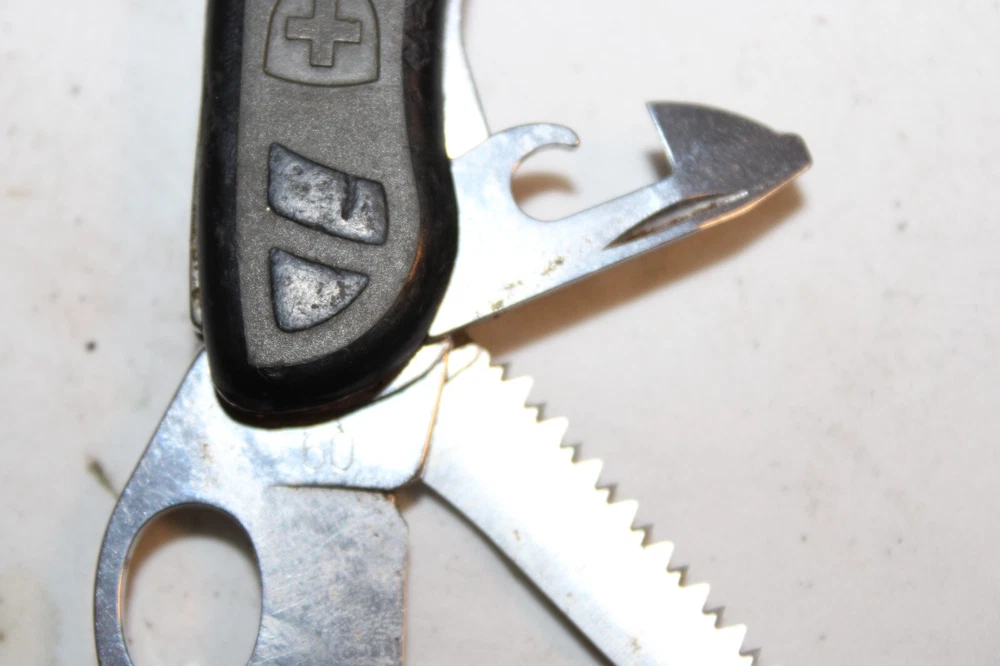Victorinox Switzerland First Aid Survival Knife 6pc Folding Knife Lock-back design Model No. 09 Great pre-owned knife. Refer to pictures. PLEASE e-mail me with any questions or for additional pictures. FREE SHIPPING in the US. Thank you for your interest and have a great day.