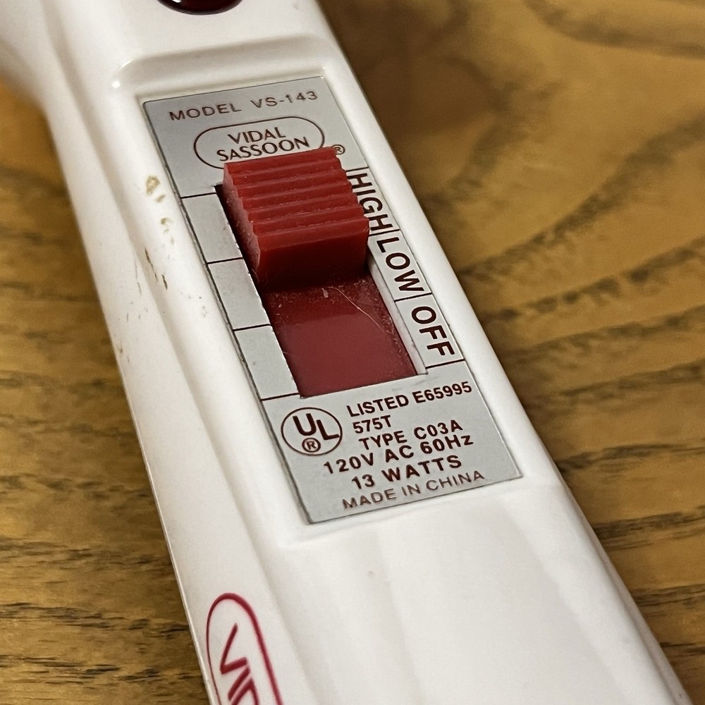 Vidal Sassoon White Red Curling Iron 1/2” Silver Barrel Model #VS-143.