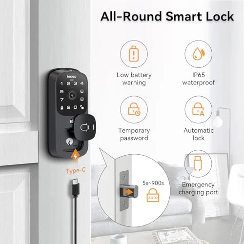 Return Policy Fast Delivery Trusted seller Video Smart Lock with Doorbell, 6 in 1 Keyless Entry Door Lock, Built-in WiFi Camera Deadbolt Lock for Front Door, Fingerprint, Keypad Code, App Control, Voice Control, Auto Lock, IP65, Video Calling Product Description Advanced 3 in 1 Integration: Video smart fingerprint lock 2024 new model support keyless entry door lock, video doorbell and 2K HD camera with f/2.0 lens, 1.64 focal length, six infrared lights paired and dual motion sensors. Our smart lock with camera promises exceptional video quality, ensure clear visibility day and night.The doorbell receiver has a maximum sensing distance of 20 meters and can adjust the volume and 36 ring tones. 6 Door Unlock Methods: User could unlock the front door lock via APP access, fingerprint, keypad code, Alexa voice, Google voice, traditional keys. Say goodbye to fumbling for keys or worrying about lost them. The AI fingerprint sensor stores up to 50 fingerprints, provides a quick to enter your home. Note: When using fingerprint unlocking, please make sure your finger and the smart lock are not wet. 2K Video and 2 Way Audio: Smart door lock with camera provide a 180° wide angle lens, 2K quality video and image. Press the doorbell button or launch the app video, the camera, built-in two-way microphone and speaker allow you to view and talk to visitors anytime, anyw, improve the security of your house. It also allows your friends and family to enter your house and help you deal with emergencies. Dual Motion Sensors: The video smart lock offers dual detection using passive infrared (PIR) detection and advanced radar technology, maximum sense up to 6 meters away. It will send push alerts and record 15s video when it detects motion, you can save the video to the phone album. App Remote Control: Smart lock with camera features built-in WiFi. The app offers seamless control of your smart lock and camera from anyw in the world. You can lock and unlock your door, check the live feed, and communicate with visitors at your doorstep, manage user members, all from the convenience of your smartphone. Note: The smart home device can only connect to 2.4GHz WiFi and cannot connect to 5GHz WiFi. Long Battery Life and Weather Resistance: Wifi door deadbolt lock has 10,000 mAh battery pack. Battery package could about 180 days using by single fully charge. Open the doorbell cover, a type C charging port for emergency charging. With IP65 dustproof and waterproof certification, this smart lock with camera withstands various weather conditions, providing consistent security throughout the year. Easy Installation and Excellent Customer Service: Compatible with most standard US and Canadian deadbolt spacings(door thickness:1 3/8 in-2 1/8 in [35-55 mm], backset:2 3/8 in or 2 3/4 in [60 mm or 70 mm]) installs in 15 minutes. It is on standby for you, so you can enjoy a worry-free experience with a 12-month protection, all backed by our professional customer service team. Contact us by package box and instructions, please feel free to contact us. Shipping Returns Payment Shipping Shipping is FREE to all addresses other than APO/PO boxes in the lower 48 states. All our stock ships from US-based warehouses. Shipped via USPS or UPS (depending on location and package weight) Unless stated otherwise, all orders will ship within 24-72 hours of your payment being processed. Check our feedback to see the great reviews of FAST shipping we offer. Returns Seller does not accept returns Payment We currently accept payment via eBay managed payments only. Once payment is cleared, we will dispatch your shipment within 1-3 business days. Please refer to the "Shipping" tab for more information regarding shipping speed to your destination.