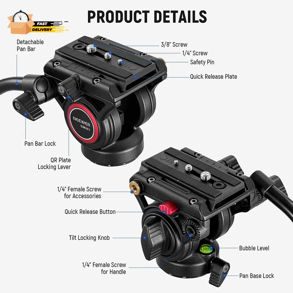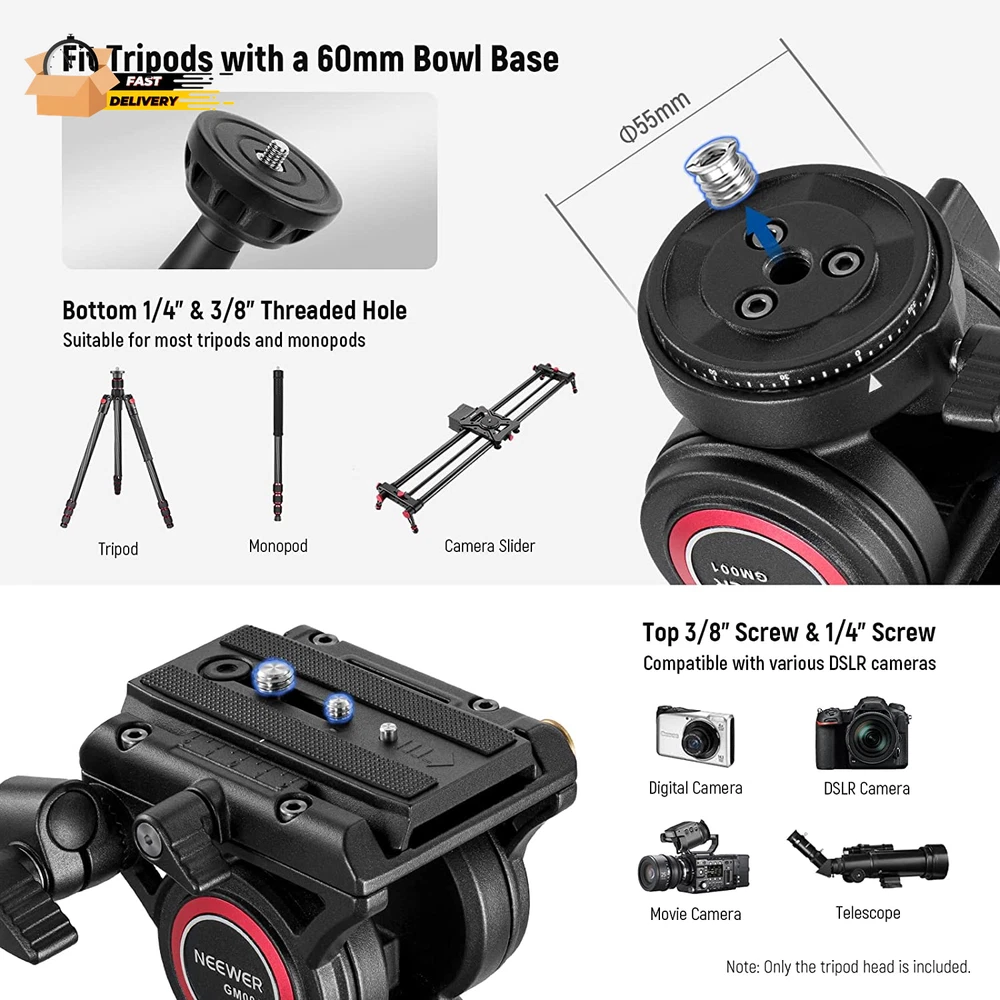 Store New Arrivals Add to Favorite View Feedback Contact Video Tripod Fluid Head with Quick Release Plate Compatible with Manfrot Description Item model number GM001 Style GM001 Color Black Compatible Devices Camcorder, Camera Maximum Weight Recommendation 6 Kilograms Item Weight 30.97 Ounces Package Dimensions 10.67 x 5.71 x 5.2 inches 【Lightweight Fluid Drag Pan Head】 This ultra lightweight, medium sized fluid head is made of aluminum alloy and features a hollow, elaborate design, weighing only 1.5lb/0.69kg, making it portable and suitable for outdoor creation, videography, shooting, travel vlogging recording. With a maximum load capacity of 13.2lbs/6 kg, it can withstand heavy camcorders and video DSLR cameras and uncertain weather 【Smooth Panoramic Movement】 On the pan base with 360° scale marking, you can take spectacular panoramic images with fluidity and precision. Two Rosette mounts allow you to install the drag handle on both sides and pan the fluid head with either hand. Additionally, a handy bubble level helps your equipment keep the level straight all the time 【Convenient Quick Release System】 The quick release system enables quick camera mounting . A safety pin prevents the plate and your valuable camera from dropping. Simply press the side release button and slide the plate out of the clamp 【Easy & Safe Angle Adjustment】 With -70°/+90° counterbalanced tilt adjustment, this tripod head lets you photograph at any angle, whether it’s low angle, overhead, vertical, or horizontal. Once you find the perfect position, tighten the locking knob to secure the tripod head in place 【Universal Mounting Threads】 The 1/4” & 3/8” top mounting screws fit a variety of camcorders, DSLR cameras, mirrorless cameras, cinema cameras, and telescopes. Whereas, the 3/8” bottom socket attaches this professional fluid head to a tripod, monopod, and camera slider with the identical thread. Compatible with Sony Canon Nikon and other DSLR cameras Product Description Bubble Level Always keep your fluid head parallel to the ground for perfect alignment and composition. 360° Scaled Pan Base Capture smooth and fascinating panoramic photography on the pan base that has a 360° marking scale. 3/8" Tripod Socket Compatible with a broad variety of tripods, monopods, and camera sliders for secure, stable camera mounting. ABOUT US We offer the best prices around on high quality products. Our E-store includes media such as books, movies, music and games while offering electronics, toys, sporting apparel, clothing, tools, general home, garden items and more. SHIPPING We are always working hard to ensure your package arrives as soon as possible. Please understand that some factors like weather, high postal traffic, and the performance of shipping companies are outside of our control. We offer free shipping to the lower 48 states and ship within 2 business days of payment, usually sooner. We do not accept P.O. Boxes. Please provide a physical address. For shipping outside of the continental USA, we only use eBay's Global Shipping Program.The item is shipped to KY and then sent to the rest of the world. International customers are responsible for all duties and taxes. Continue to check out in order to calculate costs for shipping the item to your country. Messages regarding eBay's Global Shipping Program MUST be directed at eBay EXCLUSIVELY. RETURNS We offer a 30-Day Return Policy on items which you are not completely satisfied with. You have the option for a full-refund or an exchange of the item. No returns are available on items shipped outside of the USA. PAYMENT We accept PayPal. CONTACT US This page content is yet to come Please ad us to your favorite seller and visit again later Thank You CUSTOMER SATISFACTION We try our very best to make sure every customer is completely satisfied. If there's a problem, message us! We're happy to help. WE ACCEPT Copyright © 2021 AutoDS. | All Rights Reserved