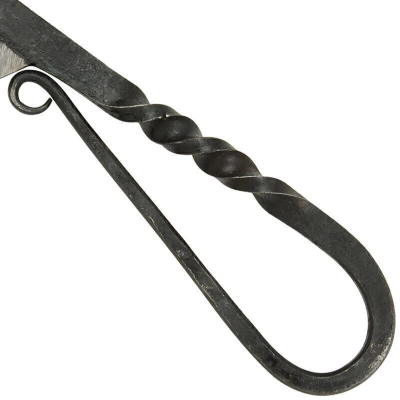 This is a knife forged from high carbon steel from the Germanic Iron Age. It has been modeled from historical replicas found during the Iron Age period which is often referred to as the Viking knife-they date around 1000 years earlier. This knife was hand Forged from a single slab of steel with a beautiful old steel rough looks. The blade offers a nice finish with a factory sharp blade which can be sharpened even more by our valuable customers. The handle is equipped with an artfully twisted handle with a curved bottom. This Viking Germanic hand forged knife is perfect for any type of re-enactment. Overall Length: 8 Inches Blade Length: 4 Inches Handle Length: 4 Inches Material: Forged High Carbon Steel Forged High Carbon Steel Full Tang Unique Curved Handle