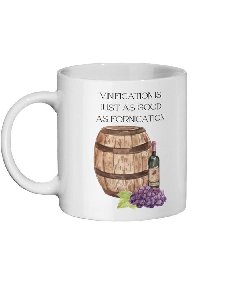 Vinification Mug Wine Lover Gift Wine Lover Mug Vinification Joke The Art Of Making Wine Wine Joke Mug Wine Joke Gift Wine Obsession Product Details.. This high quality 11oz. ceramic white mug has a premium hard coat that provides crisp and vibrant color reproduction sure to last for years. Perfect for all hot & cold beverages. The highest quality printing possible is used. It will never fade no matter how many times you wash it. Material: 100% Ceramic. Print both sides. Dishwasher and Microwave Safe. High Gloss + Premium White Finish. Printed in the U.S.A. Personalized & Custom. We support personalized and custom mug to add custom, when placing an order, you can add notes to the "order note" in shipping address section. Also you can contact us directly via message. Shipping Info. Ready to ship in 1 to 2 business days, All products are made-to-order and proudly printed in the United States. Shipped by USPS and DHL, You will receive your order in 5-7 days. Replace & Refund. All products are defective during shipping broken, chipped will be replaced free of charge. You are not satisfied with the product, we will refund 100% money to you. If any other issues arise, please do not hesitate to message, we would be more than happy to assist you.