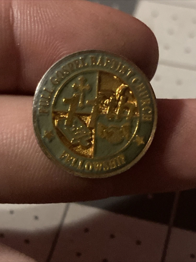 This vintage pinback is a rare find for any collector. Featuring the 11th Full Gospel Baptist Church Fellowship, this pin is a unique piece of religious memorabilia. The design showcases the church's logo and is a great addition to any pinback collection. With its religious theme, this pinback is perfect for those who enjoy collecting rare items that showcase their faith. Add it to your collection today and be proud of this vintage piece that will surely impress any guest.