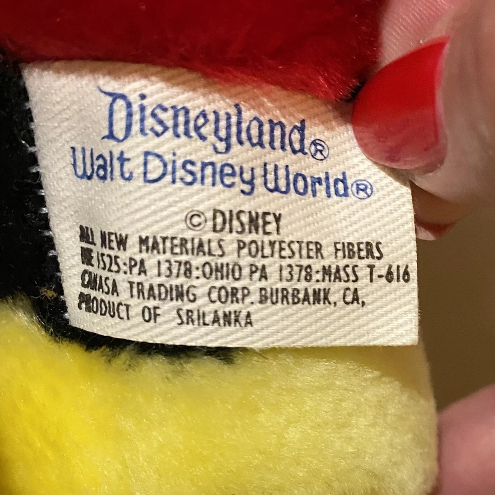 The product is a 12-inch vintage Disneyland Walt Disney World Mickey Mouse plush stuffed animal. Made by Disney, this collectible item features the iconic character Mickey Mouse from the Disney franchise. Produced in Sri Lanka, this classic plush toy is a must-have for any Disney enthusiast looking to add a piece of nostalgia to their collection. Perfect for fans of Mickey Mouse and Disneyana, this stuffed animal is a timeless treasure that brings joy and memories of the beloved character.