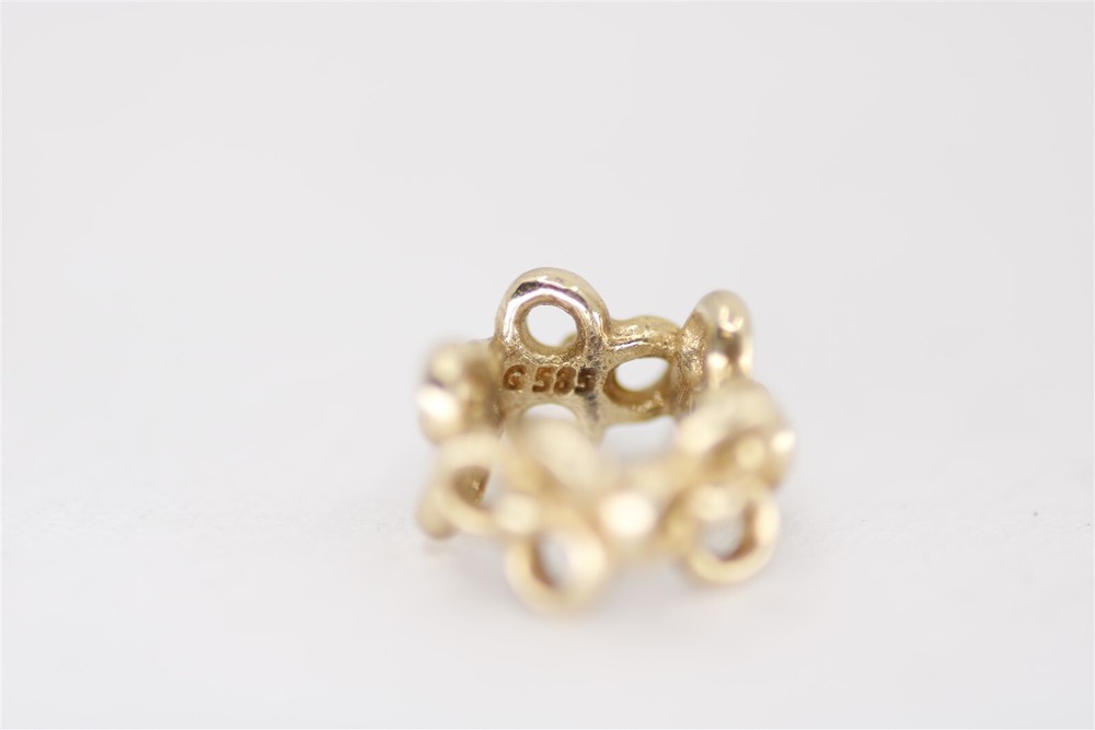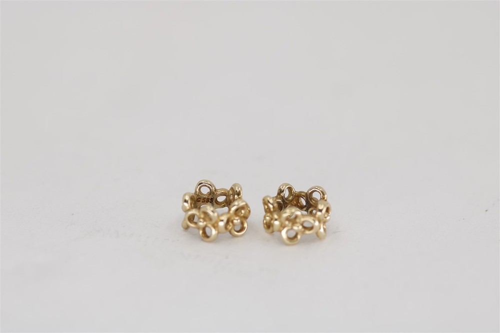 Vintage 14k yellow gold Pandora set of two charms. Trinity flower spacers, style # 750451. Stamped 14K. 1 gram. NG01225 Item As Is. All stones not identified unless clarified above. All items are pre-owned and pre-loved. Stones may show minor nicks and abrasions or small signs of wear. Diamonds are graded using GIA standards by GIA Graduates. Diamond and gemstone weight is estimated by formula. The metal is stamped or identified by acid testing and/or XRF alloy analyzer gun. All items shipped USPS First Class, Signature Required Items over $1000 ship overnight, Signature Required Please message with any questions. We are available Monday through Saturday 10am to 6pm. Powered by SixBit's eCommerce Solution