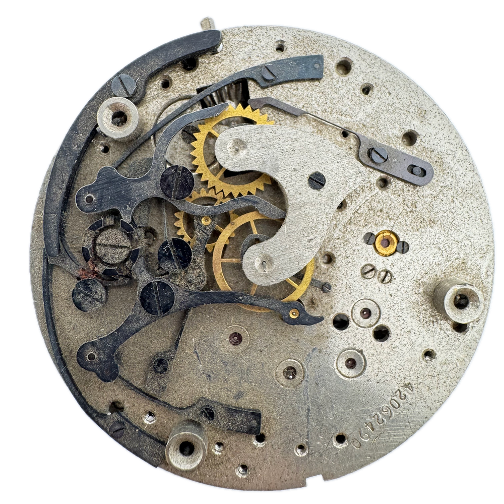 Vintage 16s 1943 Elgin 15 Jewel Chronograph Pocket Watch Movement 582 USA Product Description Item: Pocket Watch Movement Brand: Elgin Movement: Chronograph Production Year: 1943 Country: USA Jewels: 15 Jewel Gender: Men's Grade: 582 Size: 16s Product Measurements Diameter: 43mm Product Condition Overall Condition: Poor, overall condition for its age. Functions: Not running but the balance complete is in good condition. Dial: The dial is missing. Hands: It is missing all the hands.