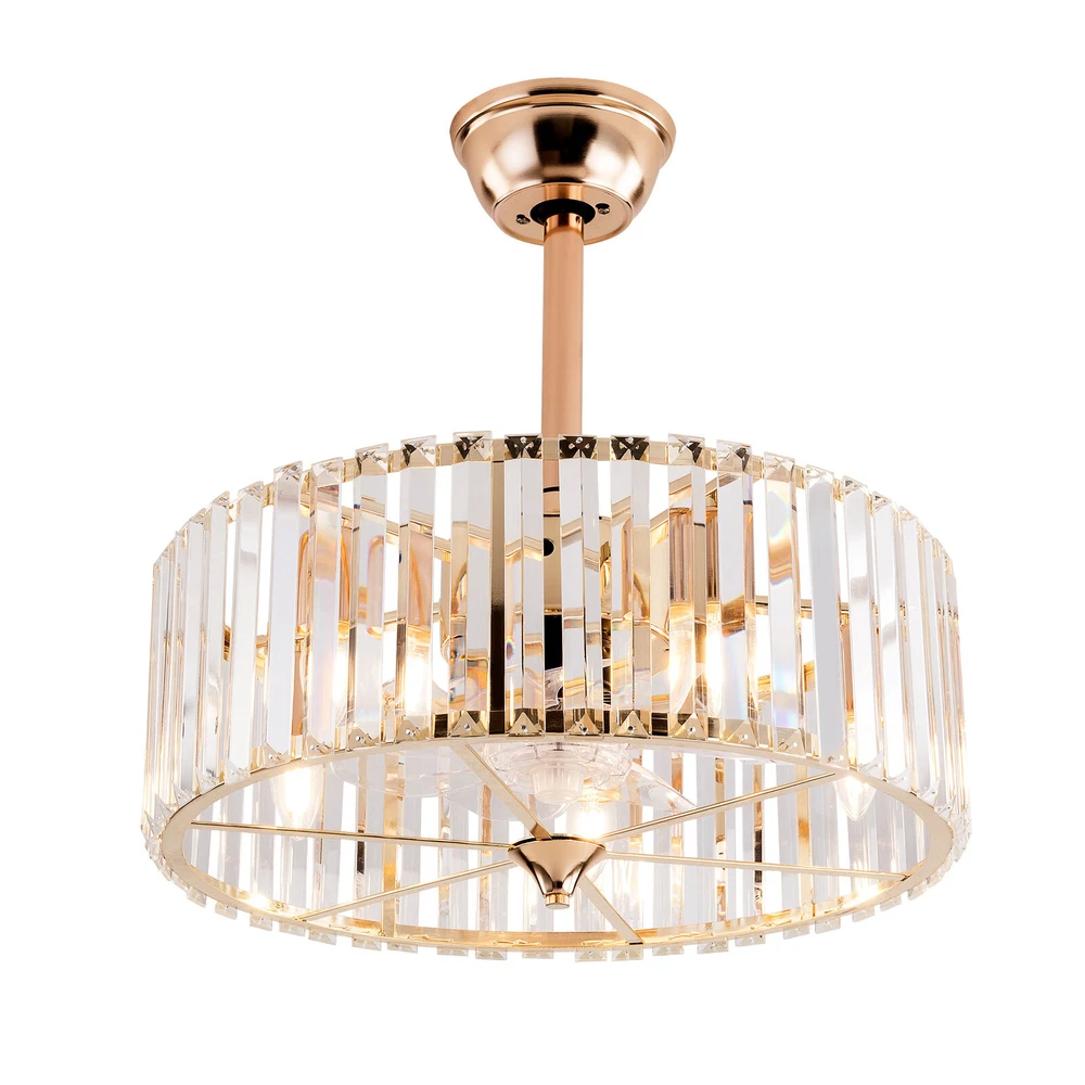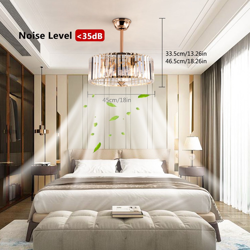 Specifications Color: Gold Material: Copper, Tempered Glass, ABS Surface Treatment: Solder Process Style: Retro Motor Type: Pure Copper&Reversible Motor Number of Fan Blades: 7 Mounting Type: Ceiling Mount Rated Voltage: 85-265V Rated Power: 40W Power Source: DC Wind Speed Gears: 6 Timing: 1/2/4h Bulb Size:5*E26/E27 (Not Included) Suitable Area: 10-15㎡/107-161ft² Electric Fan Design: Ceiling Fan Room Type: Bedroom, Living Room, Dining Room, Living Room, Kitchen Controller Type: Frequency Conversion Remote Control Efficiency: E Noise: About 40dB Base Size(L*H): 15*5cm/5.9*1.96inch Lampshade Size(L*H): 45*16.5cm/18*6.5inch Down-rod Length: 12cm/4.8inch, 25cm/9.8inch Product Height: 33.5cm/13.26inch, 46.5cm/18.26inch Package Included 1 * Ceiling Fan Light 1 *English Manual 1* Remote Control 18 Inch Retro Ceiling Fan Light 6 Speeds Tempered Glass Caged Pendant Lamp w/ RC Description This 2-in-1 ceiling fan light allows you to feel the bright light and enjoy the coolness at the same time. It has six gears of wind speeds with a timing function to meet your daily usage needs. It can be integrated with different decoration styles and is ideal to create an excellent life and sleep environment to accompany you in all seasons. Key Features Stylish Exterior: The cylindrical lampshade, retro color scheme (Gold), and delicate lines make it very luxurious, and the strips of tempered glass are like beating piano keys. It can be a good decorative piece to blend in with different decor styles and add color to your room. Great Durability : The lampshade is made of high-quality copper with a s oldering process and tempered glass with high transparency, which is heat-resistant , strong, durable, and not easy to deform. The fan blades are made of ABS, which has high strength, good toughness, and good formability, which can ensure a smooth surface and good gloss. Excellent Performance: The 7 fan blades and pure copper motor can provide strong wind, which can not only improve the air circulation in the room to keep the air fresh but also can be used with air conditioners to balance the indoor temperature. Meanwhile, the reverse function can promote heat circulation in cold winters High Safety: It is enclosed with 7 ABS blades hidden in the cage to avoid an accident caused by getting involved in the blades, so it's much safer than traditional fans to protect your family away from the fan blade's danger. 2-in-1 Function: The ceiling fan light has the function of fanning and lighting. It can not only illuminate you but also reduce heat, which can save you a lot of space. Adjustable Speed & Working Time: It has 6 gears of wind speed and you can choose low speed to enjoy the comfortable breeze or high speed to cool down quickly. Meanwhile, You can control its working hours in advance (1/2/4 hour), which can bring you great convenience. Large Applicable Area: The item can serve an area of 10-15㎡/107-161ft². So you can feel the coolness and illumination over a considerable area. Easy to Clean : The smooth and flat shell, as well as the detachable fan blades, make this product easy to clean. You only need to clean it with a dry cloth, saving you lots of time and effort. Guaranteed Customer Service: We aim to provide quality products and services. If you have problems, please feel free to contact us. We will reply and solve the problem for you as soon as possible. Details Remote Control: It allows you to remotely control the timing, wind speed, etc, saving you lots of effort. Down Rods: This product is equipped with two down-rods with different lengths for different ceiling heights. Pure Copper Motor: It has stable performance, low-temperature rise, and low noise(About 40dB), providing a quiet working and sleeping environment. Meanwhile, there are a lot of heat dissipation holes on the motor shell, which can provide a good heat dissipation effect to ensure the stable operation and long service life of the motor. Application It is suitable for the living room, dining room, kitchen, study bedroom, small bedroom, conference room, and other places of 10-15㎡/107-161ft². Welcome to the yokimm ! We are committed to providing customers with better and more favorable products ! If you have any questions, please feel free to contact us ! Thank you for your support! Payment Delivery details Terms of sales About us Contact us Payment We accept ebay payment 。 Fees such as import duties, taxes are not included in the item price or shipping costs. These charges are the buyer's responsibility. Delivery details Shipping: 2-9 working days to: USA Terms of sales We maintain high standards of excellence and strive for hundred percent customer satisfaction. Feedback is very important to us. We hope that you contact us immediately before you give neutral or negative feedback, so that we can address your concerns. It is impossible to address issues if we do not know about them! About us Your satis faction is our ultimate goal. We work hard to earn your trust and future business. Our certified technicians have tested each item before shipping. The unit comes with 1 year limited warranty on all manufacturing defects. a) If you receive a defective item, you may return it or ask for a discount. Please contact us within 14 days after you receive the package. b) What you returned must be intact and in its original packaging as re? u. Customer is responsible for shipping costs of the returned item. c) We will cover the cost of shipping back t with the shipping rate indicated in the registration page. We will send you a new unit or refund the full payment you paid. Thank you. Contact us Business Hour Business Hour: Monday To Friday: 8:30 AM to 5:00 PM (Beijing China time) Due to time zones, our reply to your questions may not be immediately. But within above working time, we will reply your email within 24 hours. If it's non-workdays, please kindly be patient and wait till Monday. Please contact us with ebay message. Please feel free to co