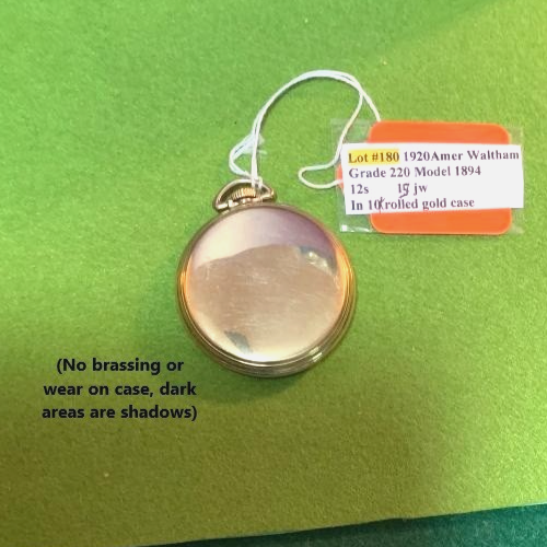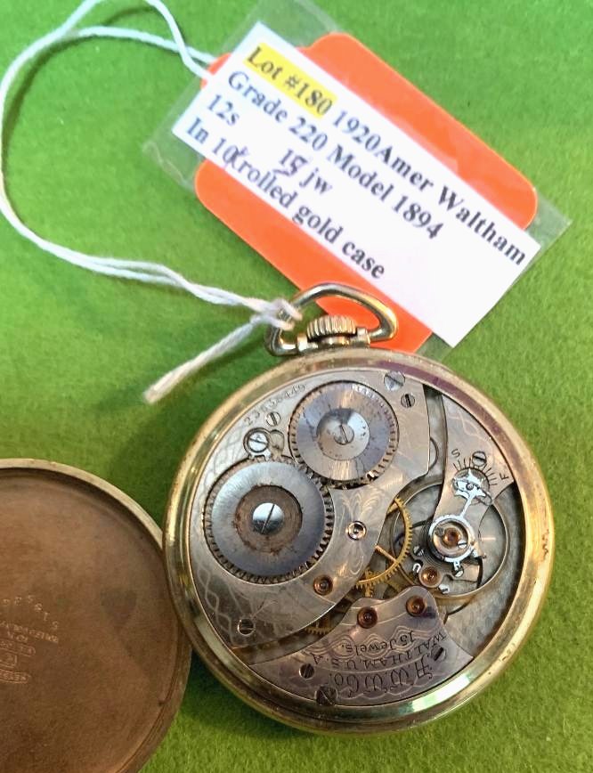 1920 Waltham 15jwl pocket watch. Watch is running and keeping time, in 10kt rolled gold Keystone case. Grade 220 model 1894 12s. Please note: We only ship in the US. As with all the watches we are offering at present time, they, like this piece, runs, sets, winds , however they are not timed for precision which is best left to a professional watchmaker. We test and inspect all watches before we ship them to respective buyers to assure accurate descriptions/function Please note: All vintage/antique time pieces we sell are sold "as is, as found" NO RETURNS. We will indicate whether a watch is running or not running, if serviced or repaired-HOWEVER we cannot guarantee accuracy or longevity, extend of run time, etc. Antique watches do not have the accuracy of modern watches We will note in description any obvious damage or defects. So, please continue to consider ANY watch we offer as needing cleaning/service/ repair/adjustment etc. and hence are listed for “parts /repair and/or restoration/repair” and should only be serviced by a professional watchmaker Even if the watch is running or keeping time within its limits and expectations (over the past 25 years of eBay sales, a few amateur /weekend “watchmakers” have tested their “skills” on a watch purchased from us, damaged it, or harvested/exchanged part(s) then demanded to return it for a refund). If you find any issue with a purchase from us, please contact us via eBay messages and we will make our best effort to pragmatically resolve a legitimate problem(s) Note we are not jewelers, or professional auctioneers, these watches are from a former watchmaker and were catalogue for eBay auction; referenced with inventory labels and information via the serial numbers using “Pocket Watch Data base” (on-line) We reserve the right to cancel any bid at our discretion, anyone with no feedback, or less than ten purchases will have bids retracted. Sorry. PLEASE DO NOT ASK US TO END AN ITEM(S) EARLY SO YOU CAN PURCHASE, OR ASK TO MAKE A “DEAL” IF YOU WANT TO BUY MULTIPLE ITEMS… OR SEND US AN OFFER WHEN THERE IS NO OPTION FOR OFFERS ON AN ITEM. Photos are an integral part of the description, ask question if you have any BEFORE you bid/buy. We described the timepieces we offer based on observations and information from the watchmaker/collector. Watches we offer are antique mechanical timepieces, and again, longevity and accuracy are not guaranteed. We package and ship with the utmost care. Again, no returns on antique/vintage timepieces. Thank you.