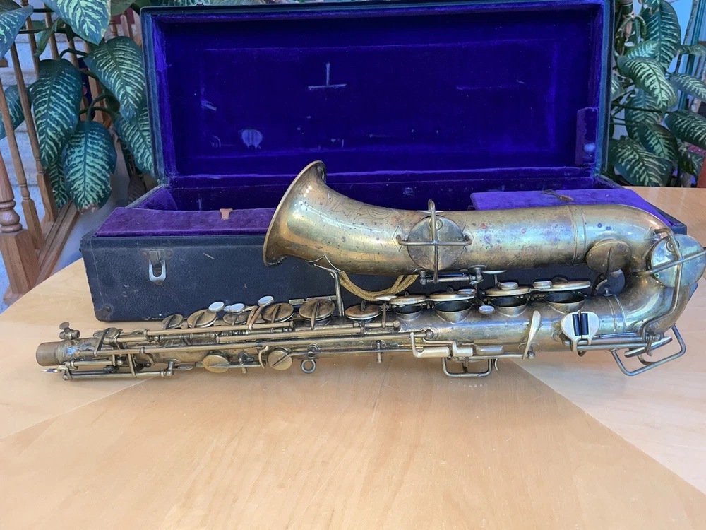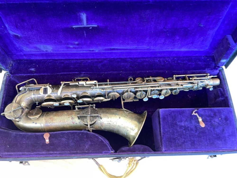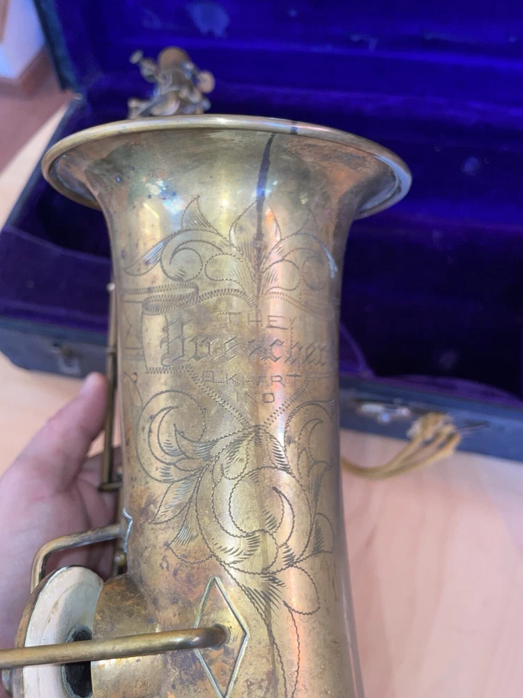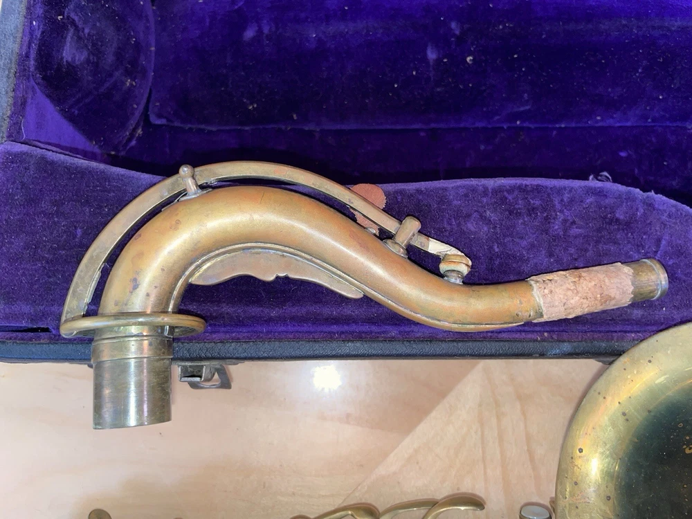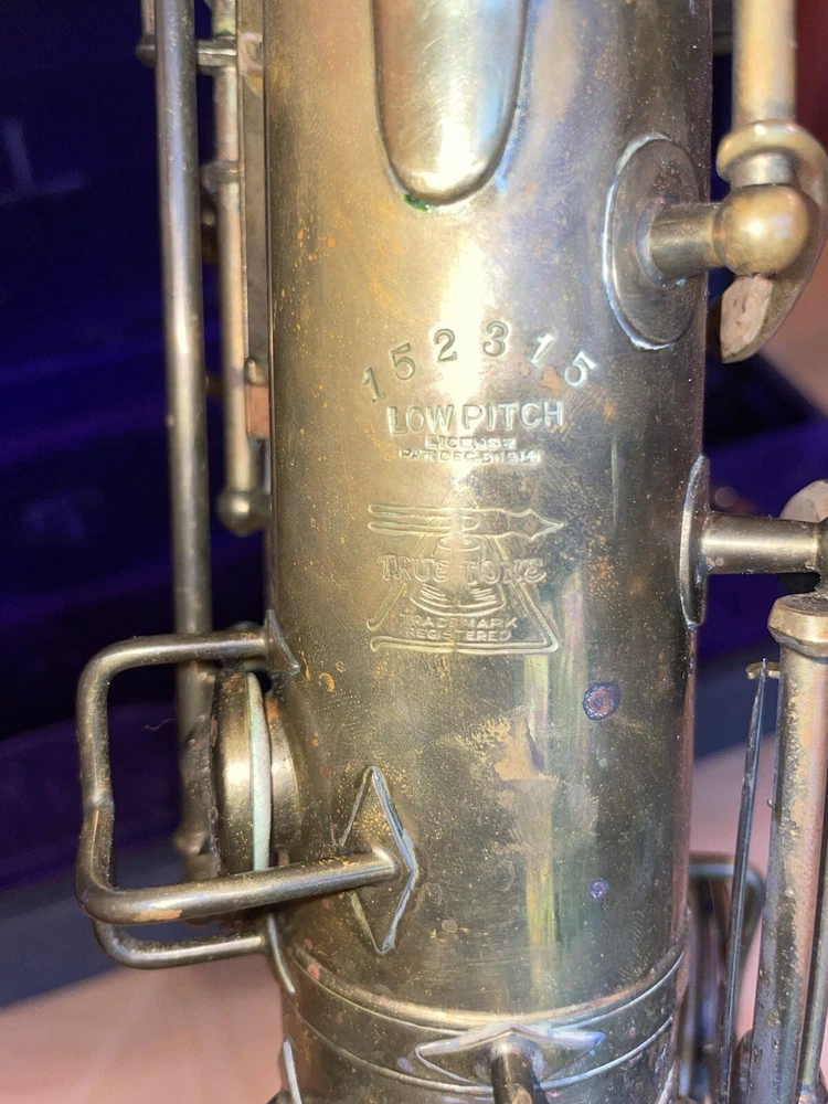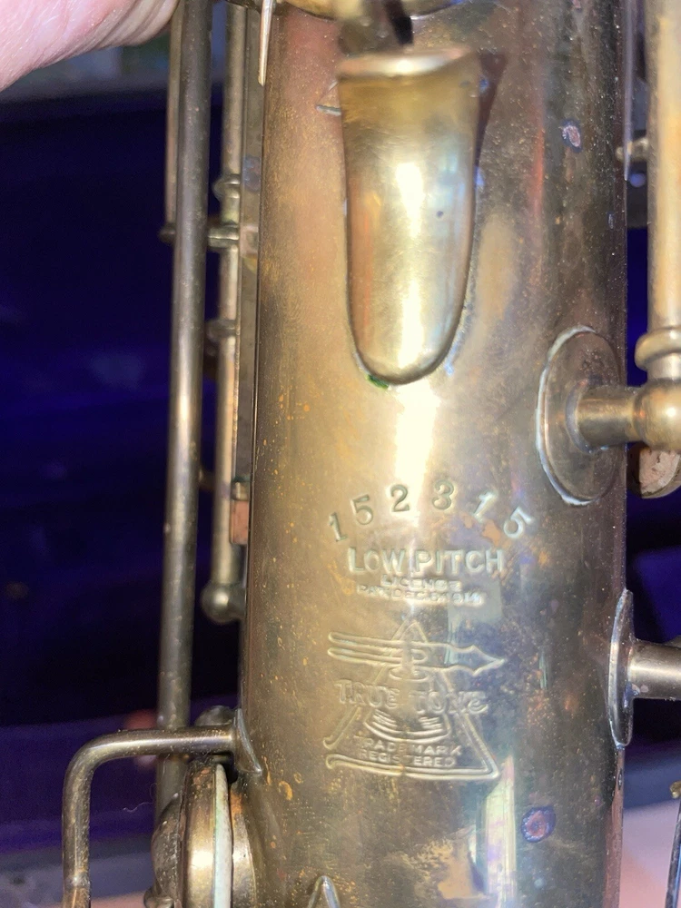 For sale is a rare vintage Buescher C Melody True Tone Low Pitch Saxophone from 1924. This Elkhart Ind model features a brass body material with a beautiful brass lacquer finish. The saxophone has been well-maintained and is in working condition, ready to be played by a new owner. I would recommend replacing some pads but it is fully functional. Numbered 152315. The saxophone is a True Tone C Melody model and has a brass key finish. It was manufactured in the United States and is a highly sought-after piece for collectors and musicians alike. Don't miss your chance to own this unique piece of musical history. Comes with original mouthpiece and additional piece- see pictures for full details.