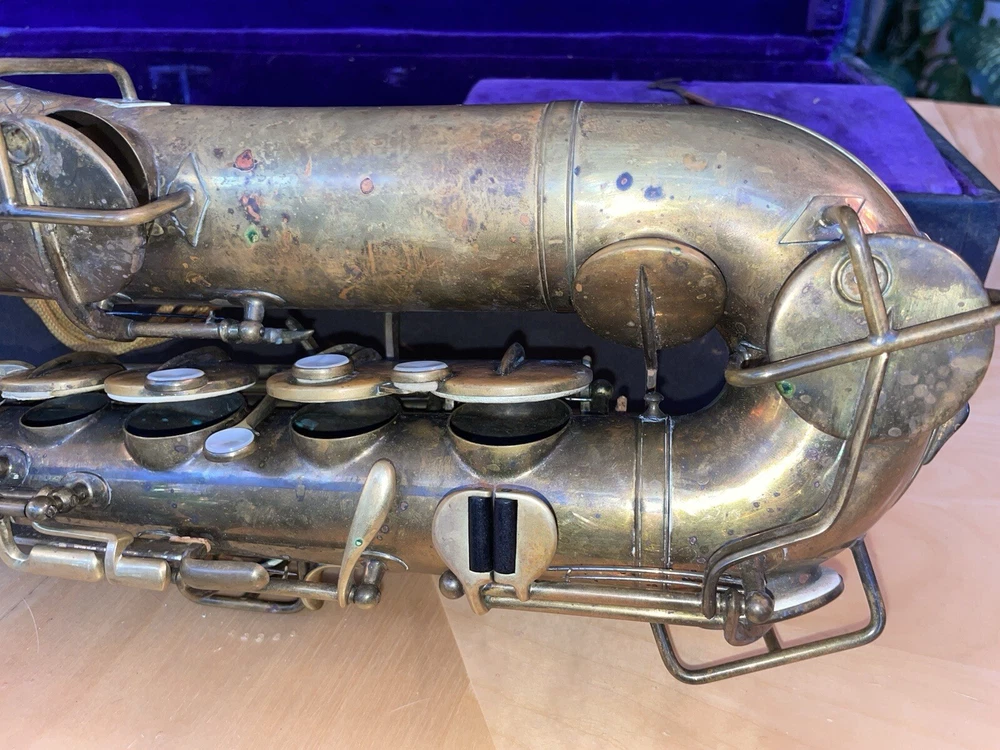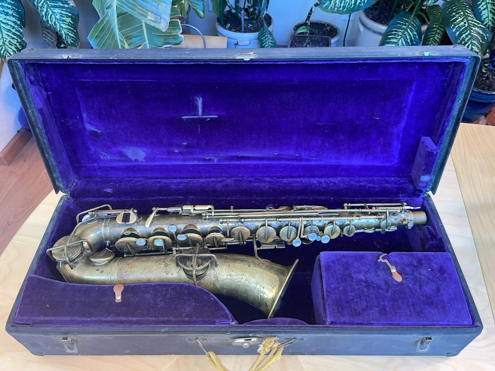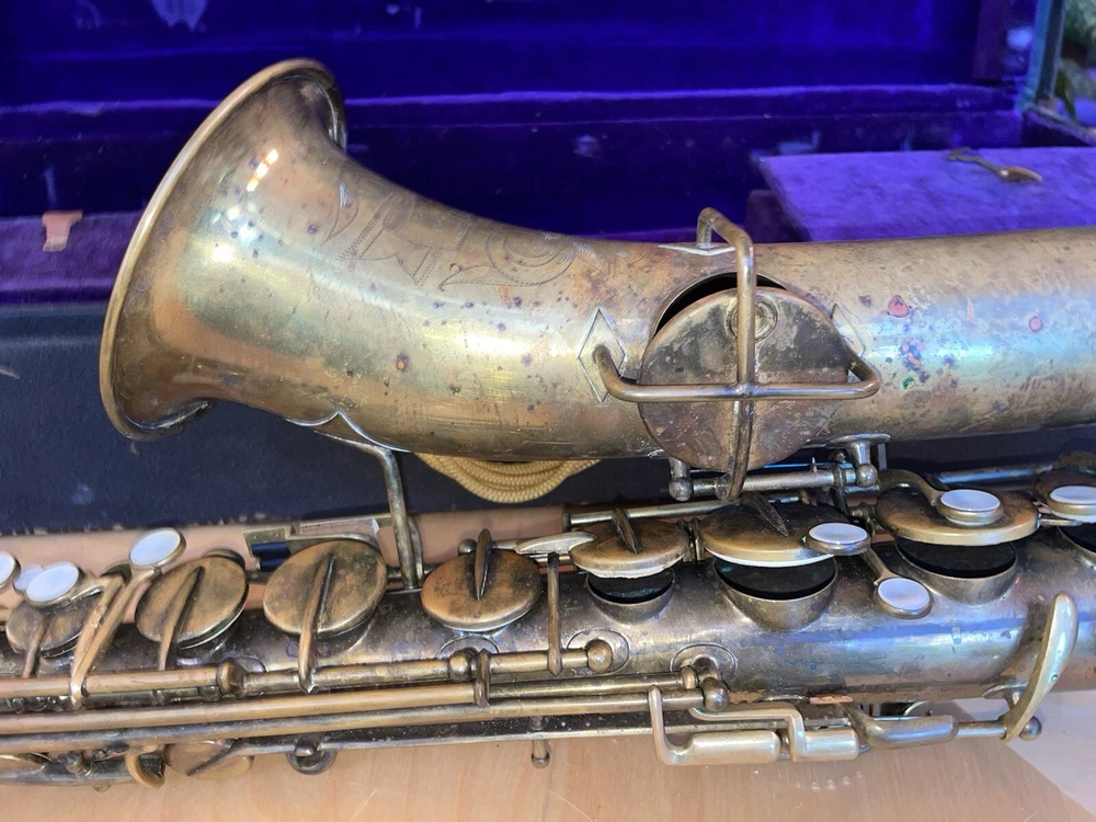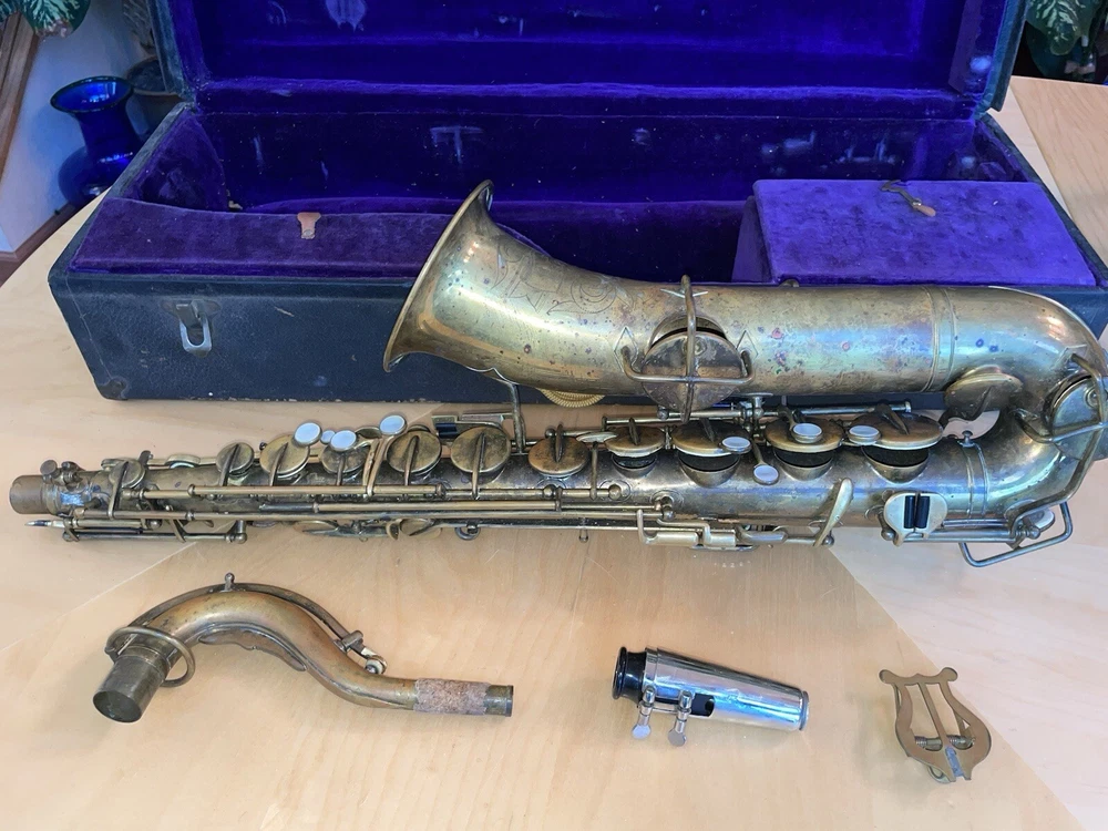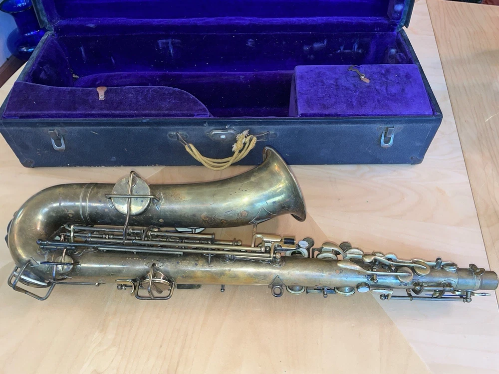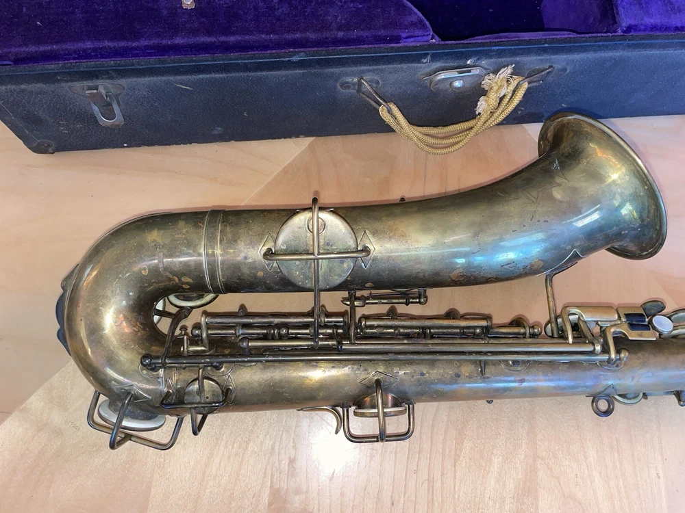 For sale is a rare vintage Buescher C Melody True Tone Low Pitch Saxophone from 1924. This Elkhart Ind model features a brass body material with a beautiful brass lacquer finish. The saxophone has been well-maintained and is in working condition, ready to be played by a new owner. I would recommend replacing some pads but it is fully functional. Numbered 152315. The saxophone is a True Tone C Melody model and has a brass key finish. It was manufactured in the United States and is a highly sought-after piece for collectors and musicians alike. Don't miss your chance to own this unique piece of musical history. Comes with original mouthpiece and additional piece- see pictures for full details.