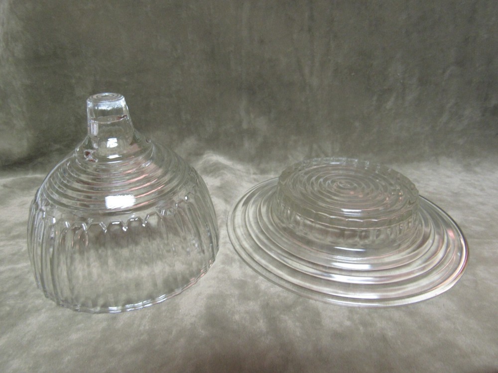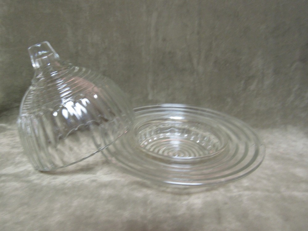 Vintage 1930s Federal Glass Art Deco Manhattan Butter Dish with Rings Design