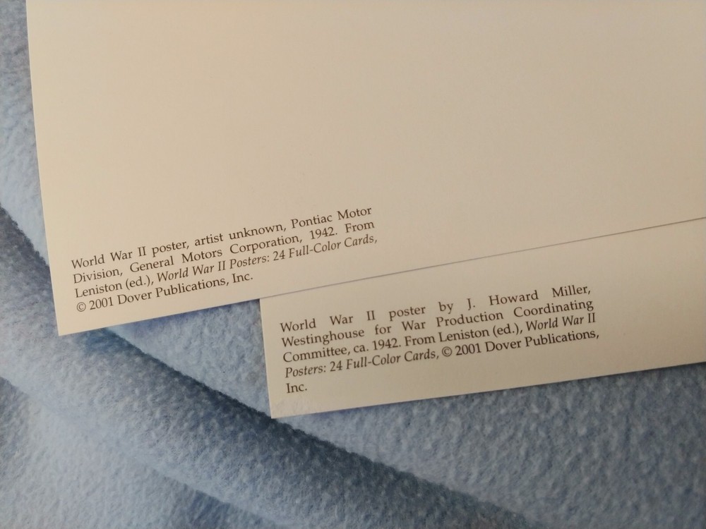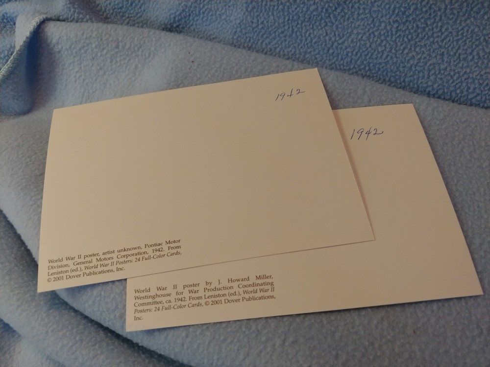 Type: Printed (Lithograph) Brand/Publisher: Dover Publications Country/Region of Manufacture: United States Number of Items in Set: 2 Subject: World War ll Year Manufactured: 2001 Time Period Manufactured: 2000-2009 UPC: Does not apply Occasion: WWll gtin13: Does not apply Postage Condition: Unposted Size: Continental (6 x 4 in) Material: Paper