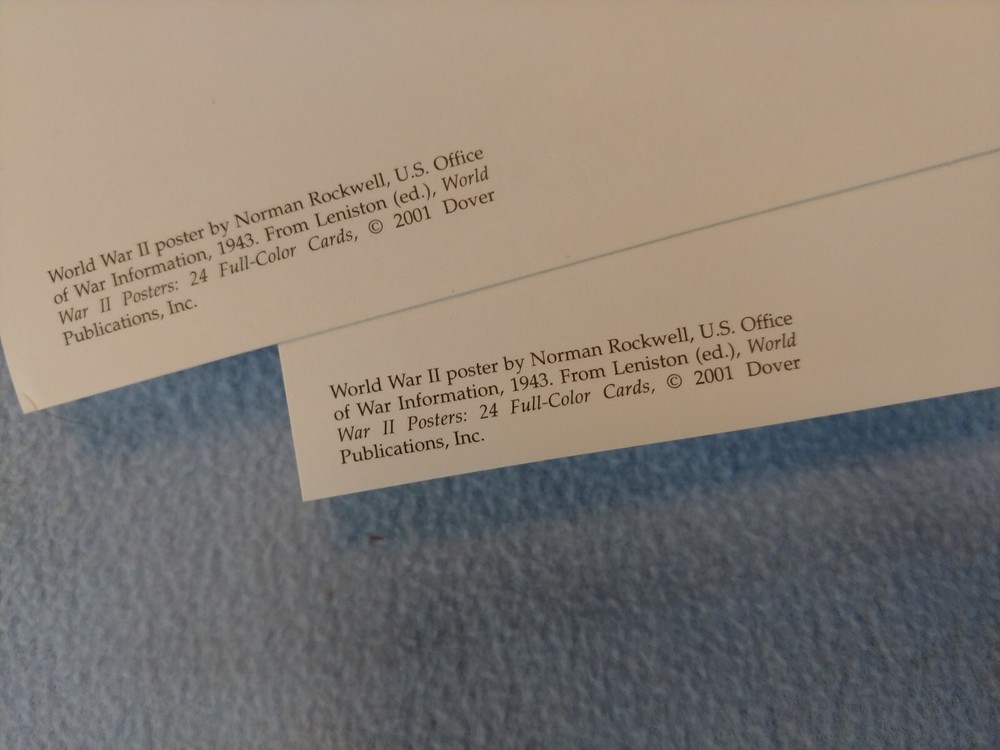 These are 2001 reproductions of wartime cards in very good condition. Size isn't exact. Very suitable for framing You will receive the exact 2 post cards shown in the photos. They will be shipped in a protective plastic sleeve in a 6"×9" envelope. Look closely at all of the photos for the best description and feel free to ask questions. I pack carefully and ship promptly with tracking. I offer combined shipping. A refund after the sale is really the best way to get the lowest shipping cost. Be sure to check out my other cards and postcards in my shop category "Postcards & Cards". I also have many other interesting items in my store. Thanks for looking!