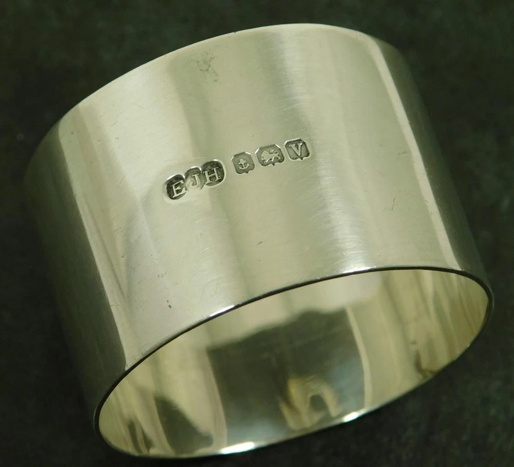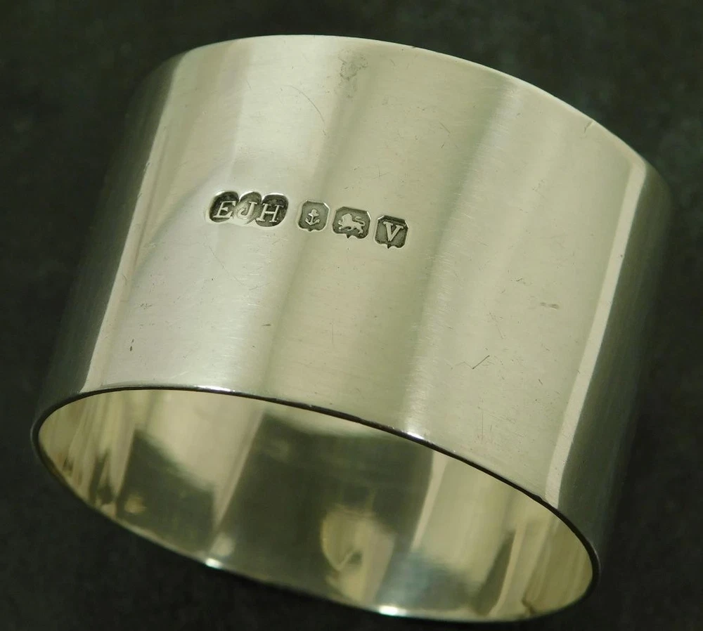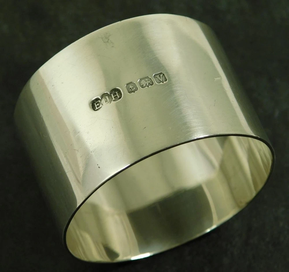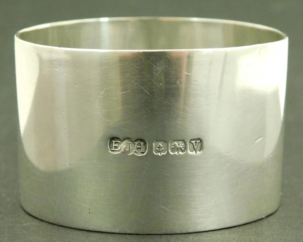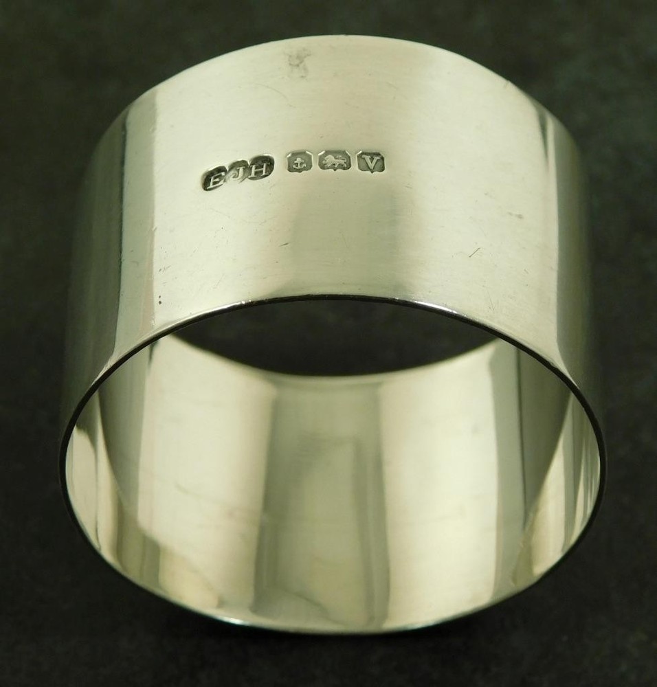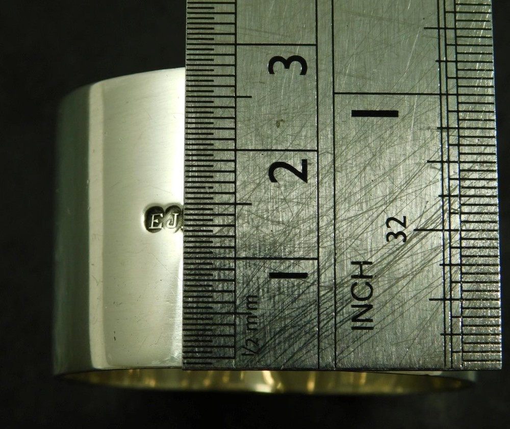 A Vintage 1945 Solid Silver Art Deco, Napkin, Serviette Ring This item measures approx, 4.5cm in diameter and 3cm high. The napkin ring weighs approx 28.2g. There is a full set of Birmingham 1945 (V) solid sterling silver hallmarks. The makers mark is a distinctive "EJH" for; "EJ. Houlston" one time of Caroline St Birmingham. The item is in a good general condition, a little off round. The item has not been personalised. Please take a look at the photos as they form part of the description. Vintage Solid Sterling Silver Art Deco Serviette Napkin Ring 1945 E Houlston Vintage Solid Sterling Silver Art Deco Serviette Napkin Ring 1945 E Houlston Click images to enlarge Description A Vintage 1945 Solid Silver Art Deco, Napkin, Serviette Ring This item measures approx, 4.5cm in diameter and 3cm high. The napkin ring weighs approx 28.2g. There is a full set of Birmingham 1945 (V) solid sterling silver hallmarks. The makers mark is a distinctive "EJH" for; "EJ. Houlston" one time of Caroline St Birmingham. The item is in a good general condition, a little off round. The item has not been personalised. Please take a look at the photos as they form part of the description. THIS IS A UK SALE IN GBP STERLING. Whilst I try to list all the negative and positive aspects of an item in my listings it remains possible that some small aspect may be missed.You would be well advised to remember that unless I list something as mint it will be a used and/or antique item which may have the marks of day to day existence upon it, for example: the odd mark here and there, slight fading etc. 18013 Get images that make Supersized seem small. Showcase your items with Auctiva's Listing Templates! THE simple solution for eBay sellers.